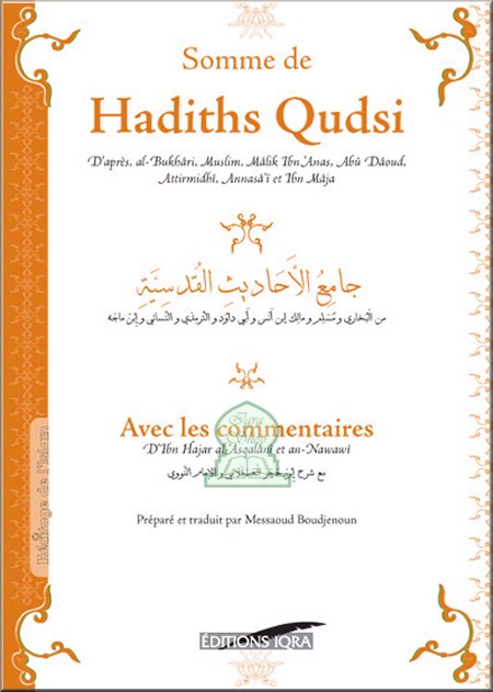 Ce livre contient une compilation de hadith qudsi tirés des livres des grands auteurs du hadith du prophète (Salut et Paix de Dieu sur Lui) : al-imâm : Malek, al-Boukhari, Moslim, abou-Daoud, Attermidhy, Annassa'i, ibn-Mâdjah.
