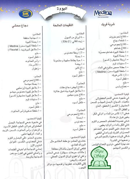 Ce livre de recettes de Mme. Rezki contient trente menus de quatre recettes pour les trente jours de Ramadan.