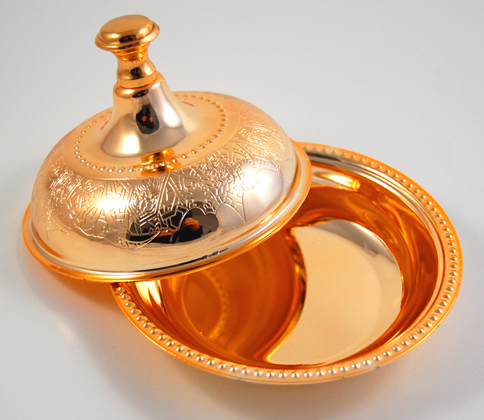 Sucrier, boite à bonbon (Récipient métallique doré avec son couvercle) - REF. 24819 (12.90 €)