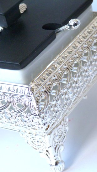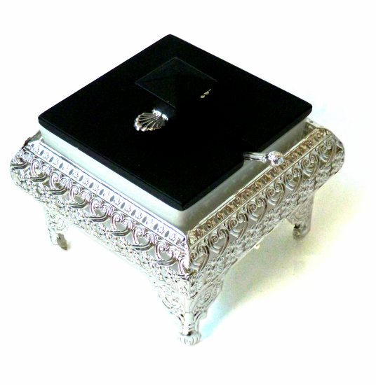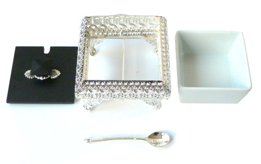 Objet décoratif en porcelaine argenté avec inscription Allah Jallâ Jalâlouh décoré d'émeraudes blanches - REF. 23396 (25.00 €)