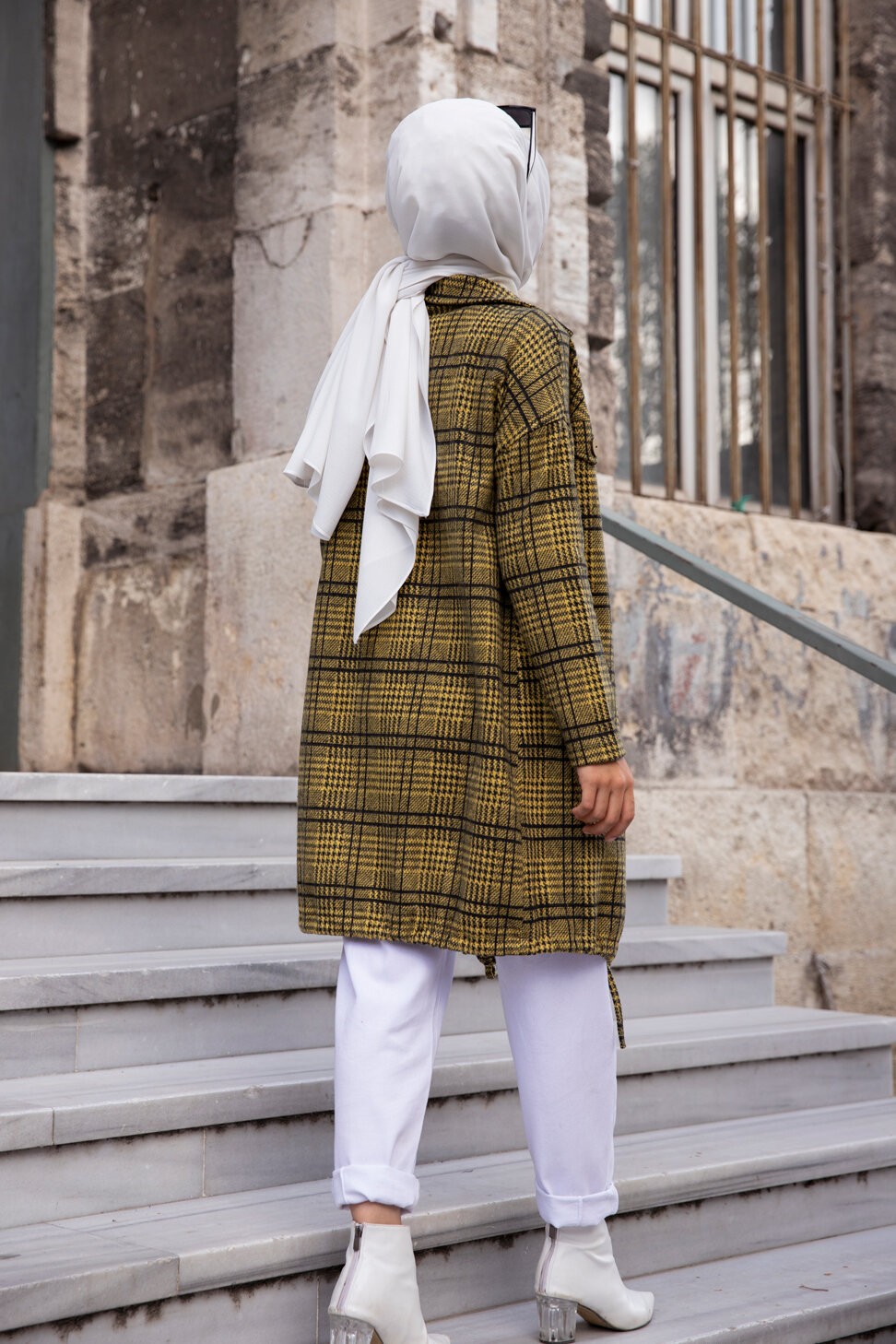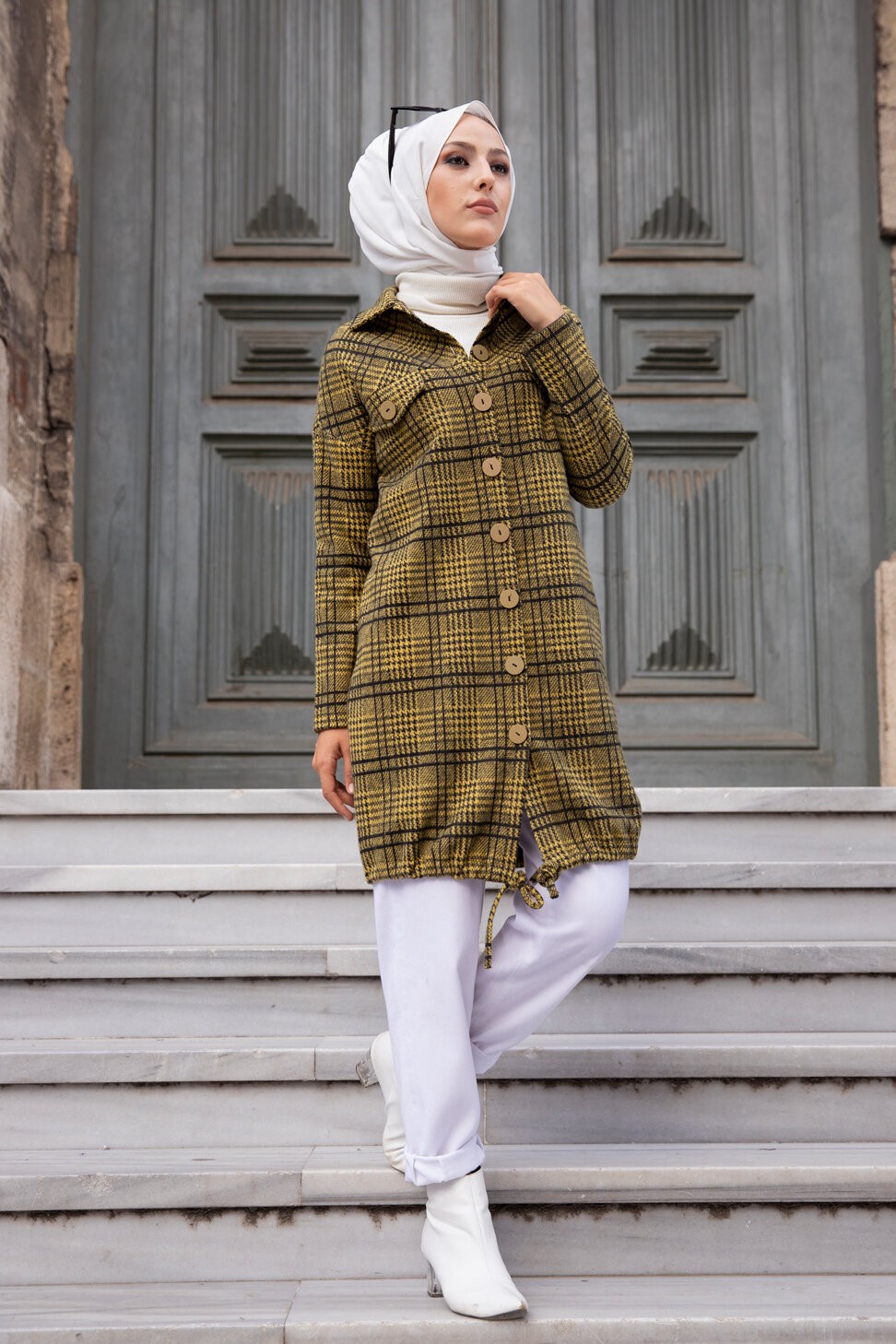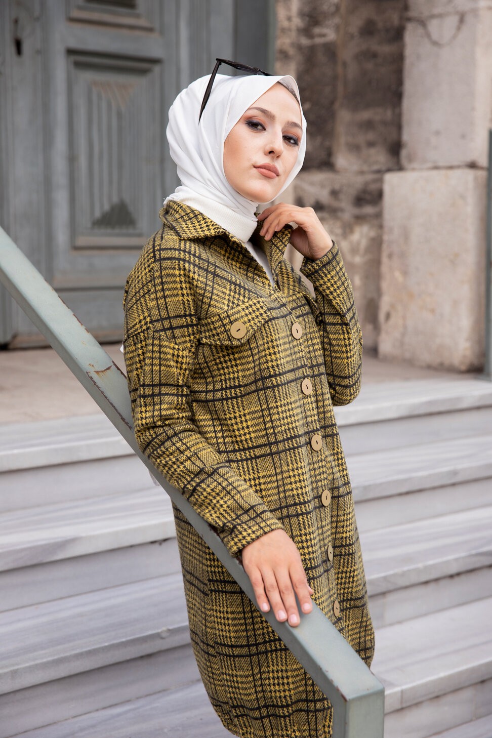 Surchemise-Tunique à carreaux pour femme (Vêtements Hijab - Saison Automne Hiver) - Couleur moutarde Vetement & Accessoire