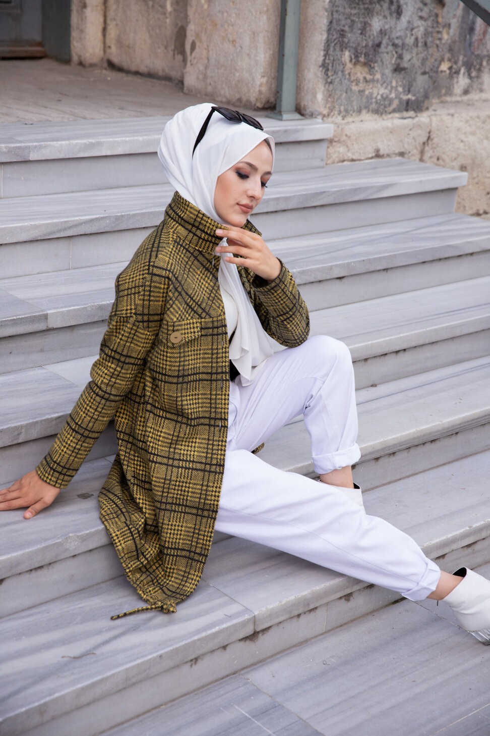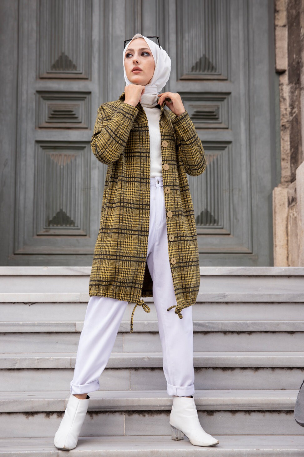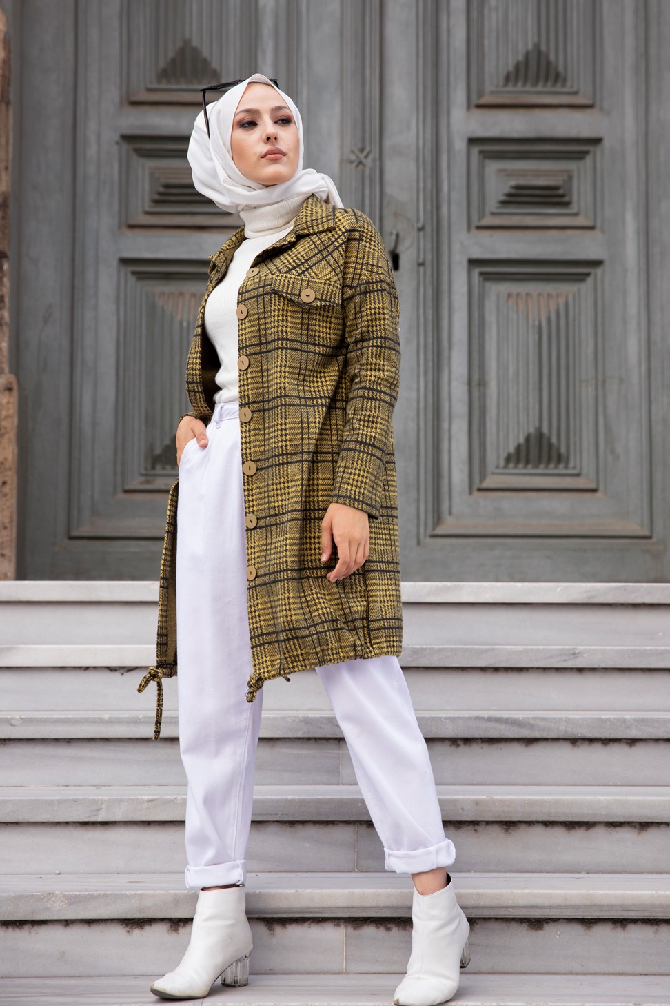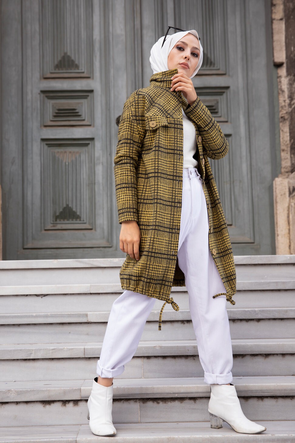 Surchemise-Tunique à carreaux pour femme (Vêtements Hijab - Saison Automne Hiver) - Couleur moutarde Vetement & Accessoire