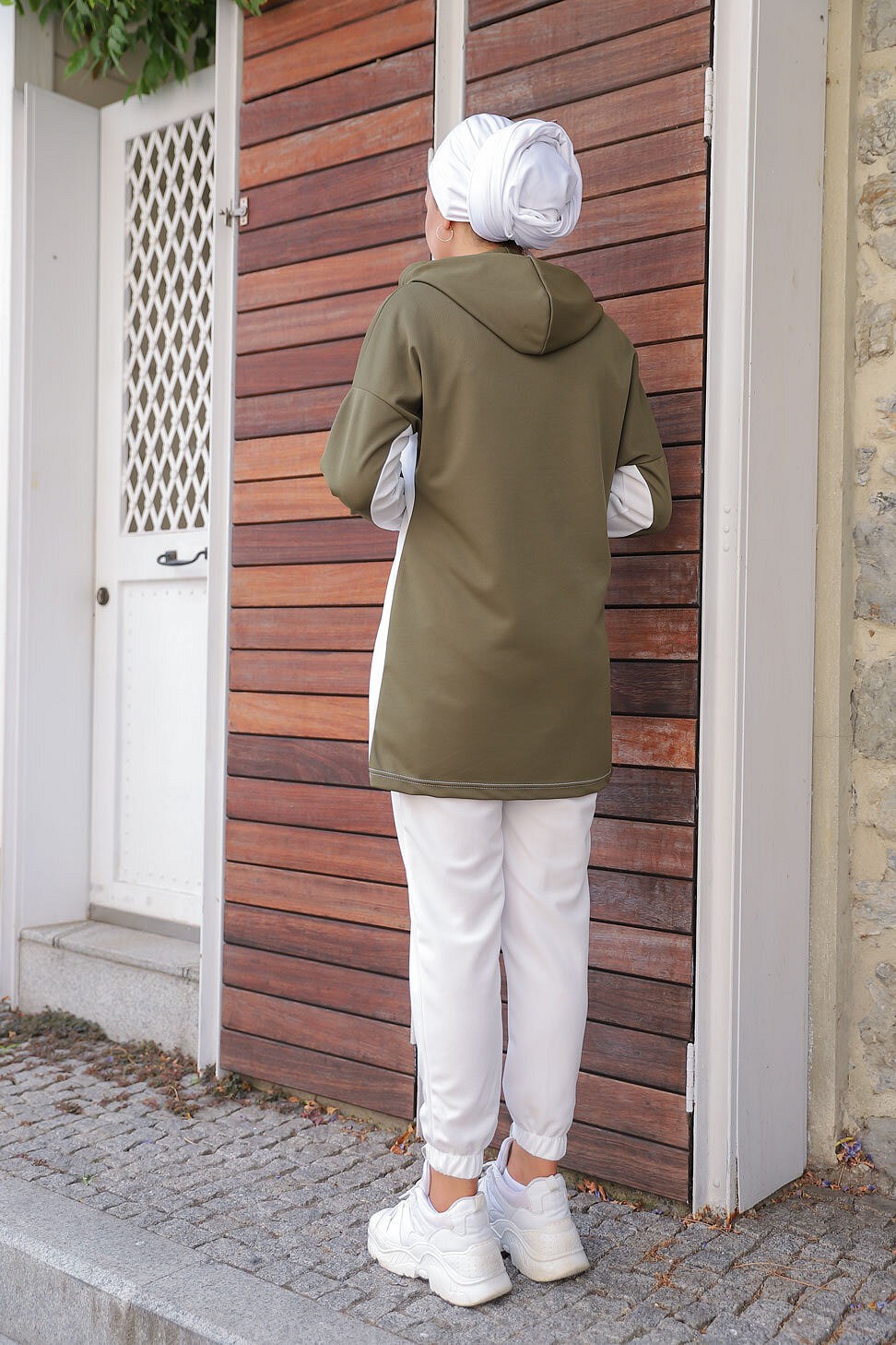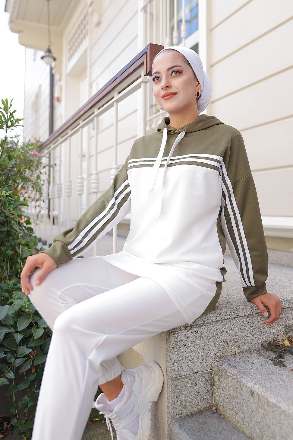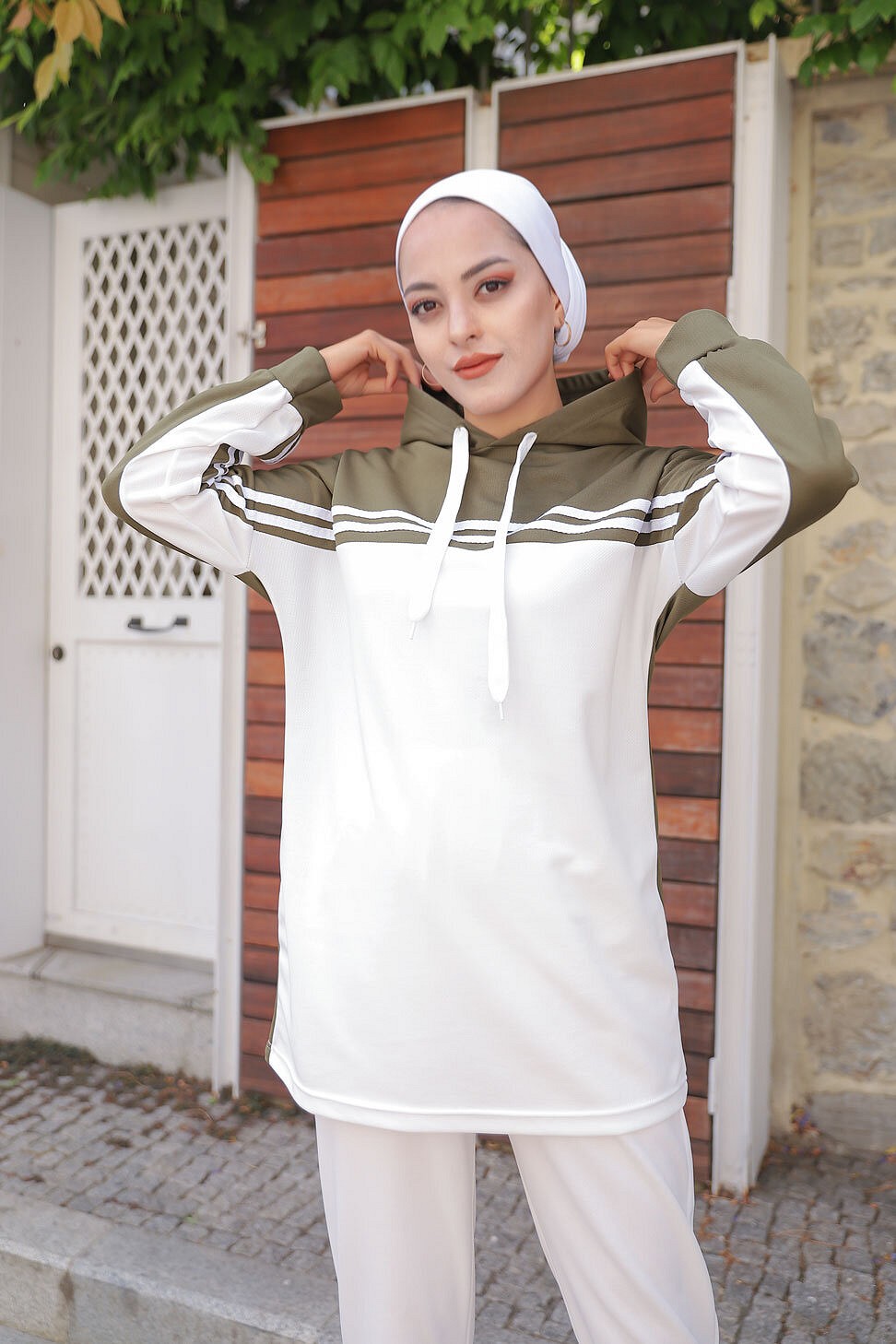 Ensemble décontracté avec tunique à capuche ample et pantalon assorti (Vetement hijab de sport mastour pour femme voilée) - Couleur kaki - REF. 36268 (35.00 €)