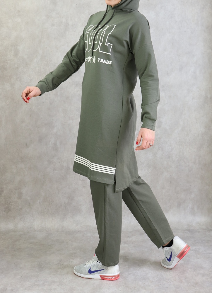 Survêtement tricolore à capuche imprimé "Breathe" (Hijab Sport-Wear) - Couleur Kaki, noir et blanc - REF. 32298 (29.90 €)