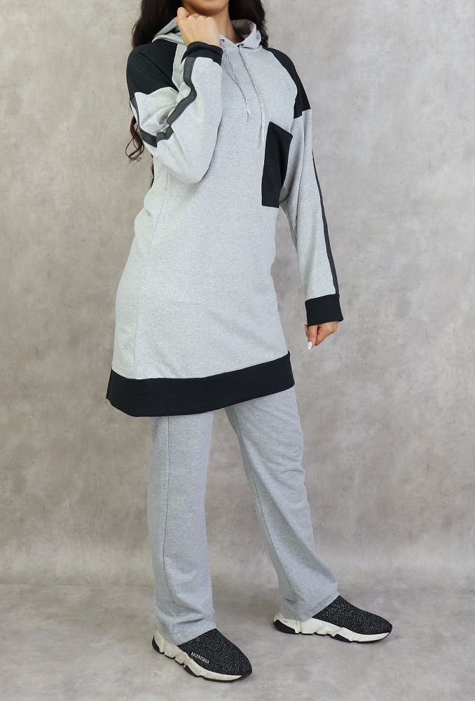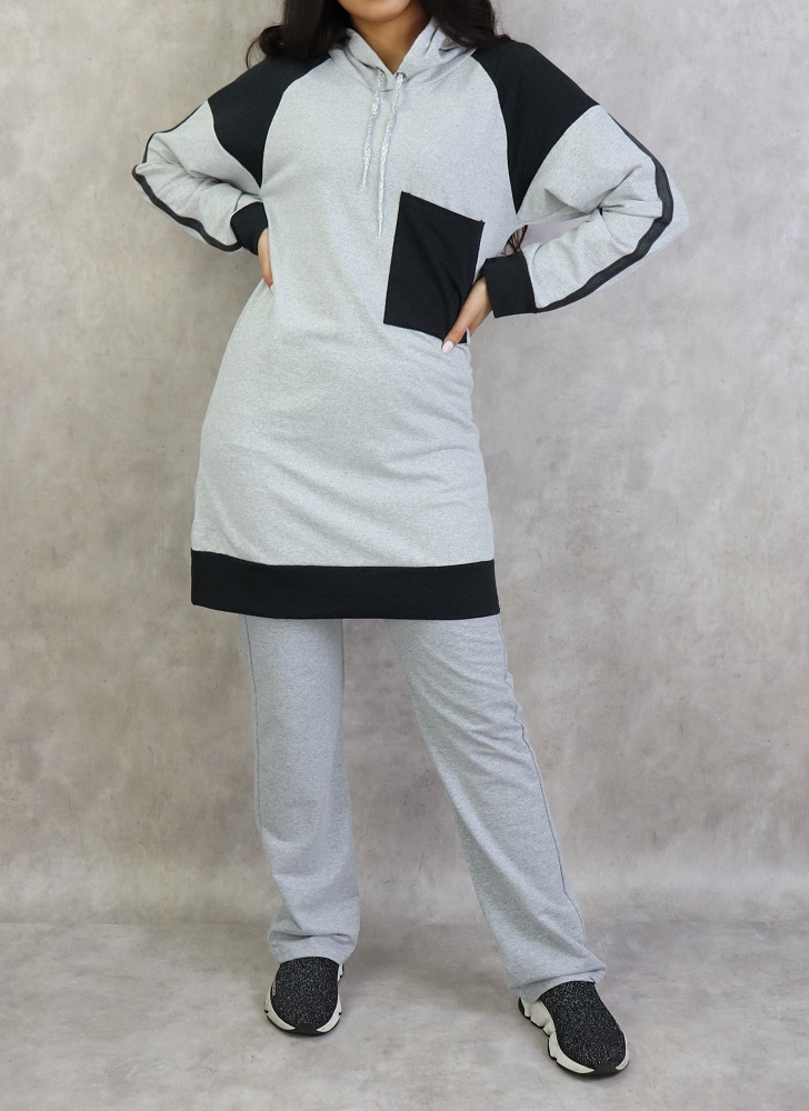 Ensemble bicolore pour femme : Tunique à capuche et pantalon assorti (Tenue décontractée et sport pour hijab) - Couleur gris et noir - REF. 36359 (26.00 €)