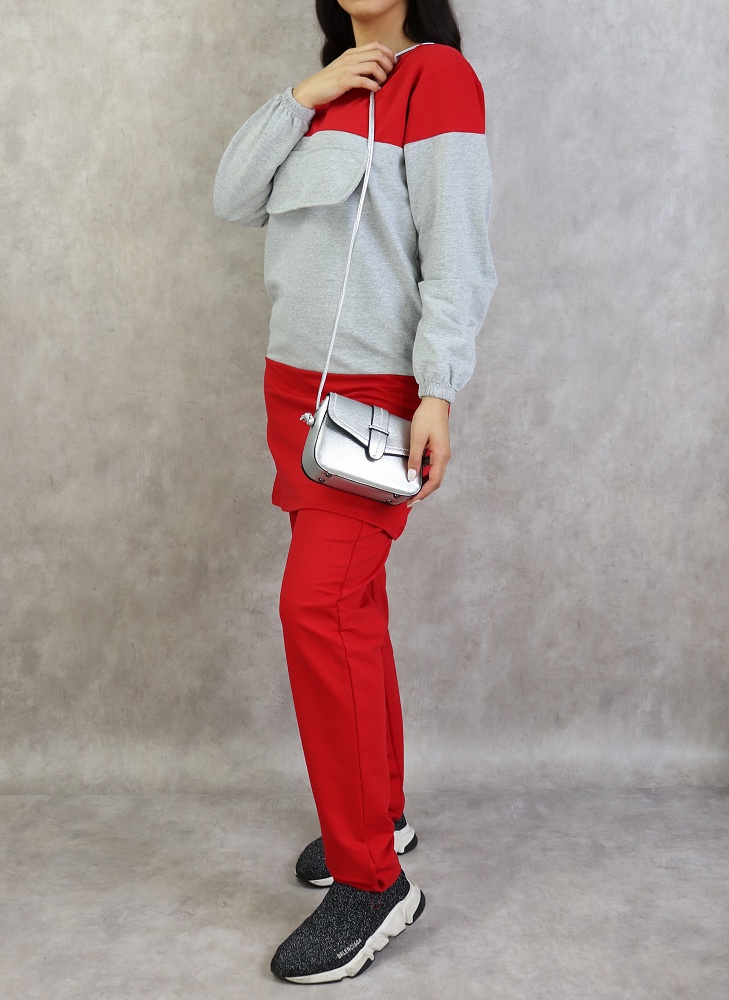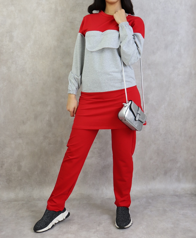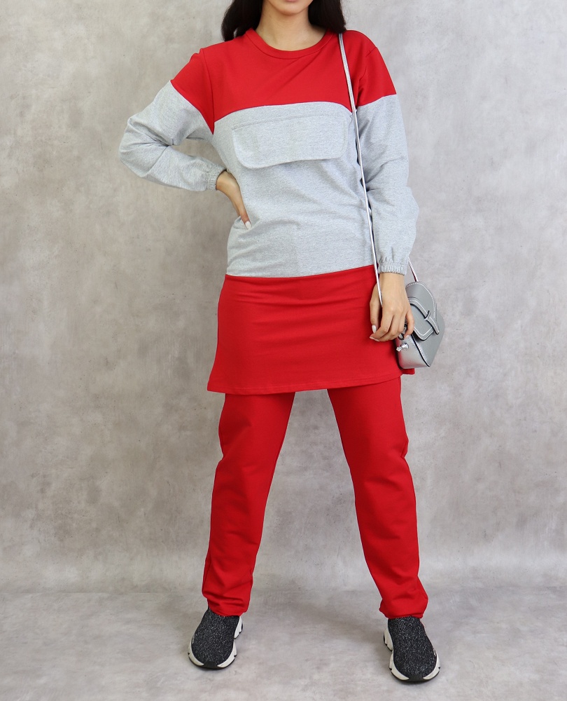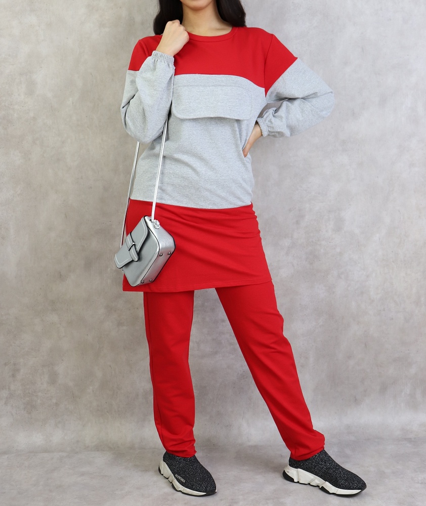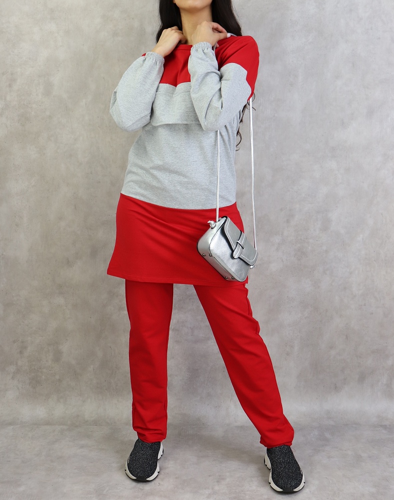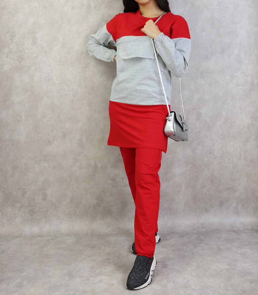 Survêtement femme 2 pièces bicolores de couleur rouge et gris Vetement & Accessoire