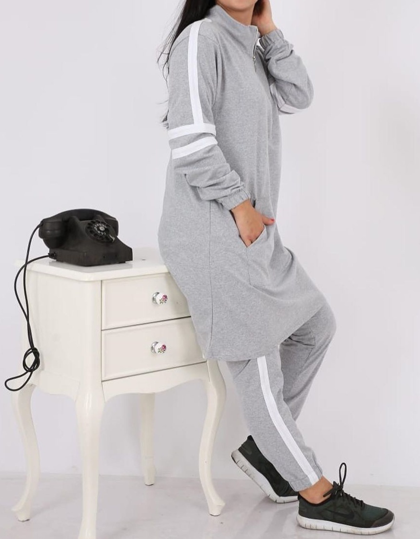 Ensemble moderne bicolore pour femme (Vêtement hijab style sport) - Couleur noir et gris - REF. 35921 (29.00 €)