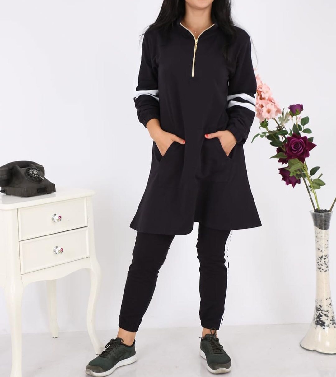 Tunique sportive bicolore pour femme musulmane (Vetement hijab moderne pas cher) - Couleur blanc et noir - REF. 30529 (19.90 €)