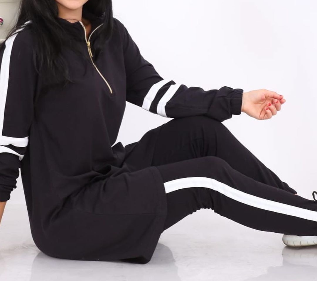Survêtement femme 2 pièces de couleur noir (Ensemble décontracté et sport - Grandes tailles disponibles) Vetement & Accessoire