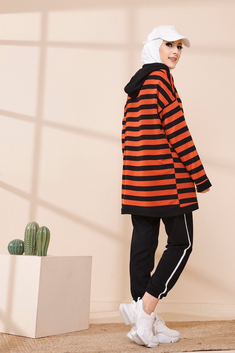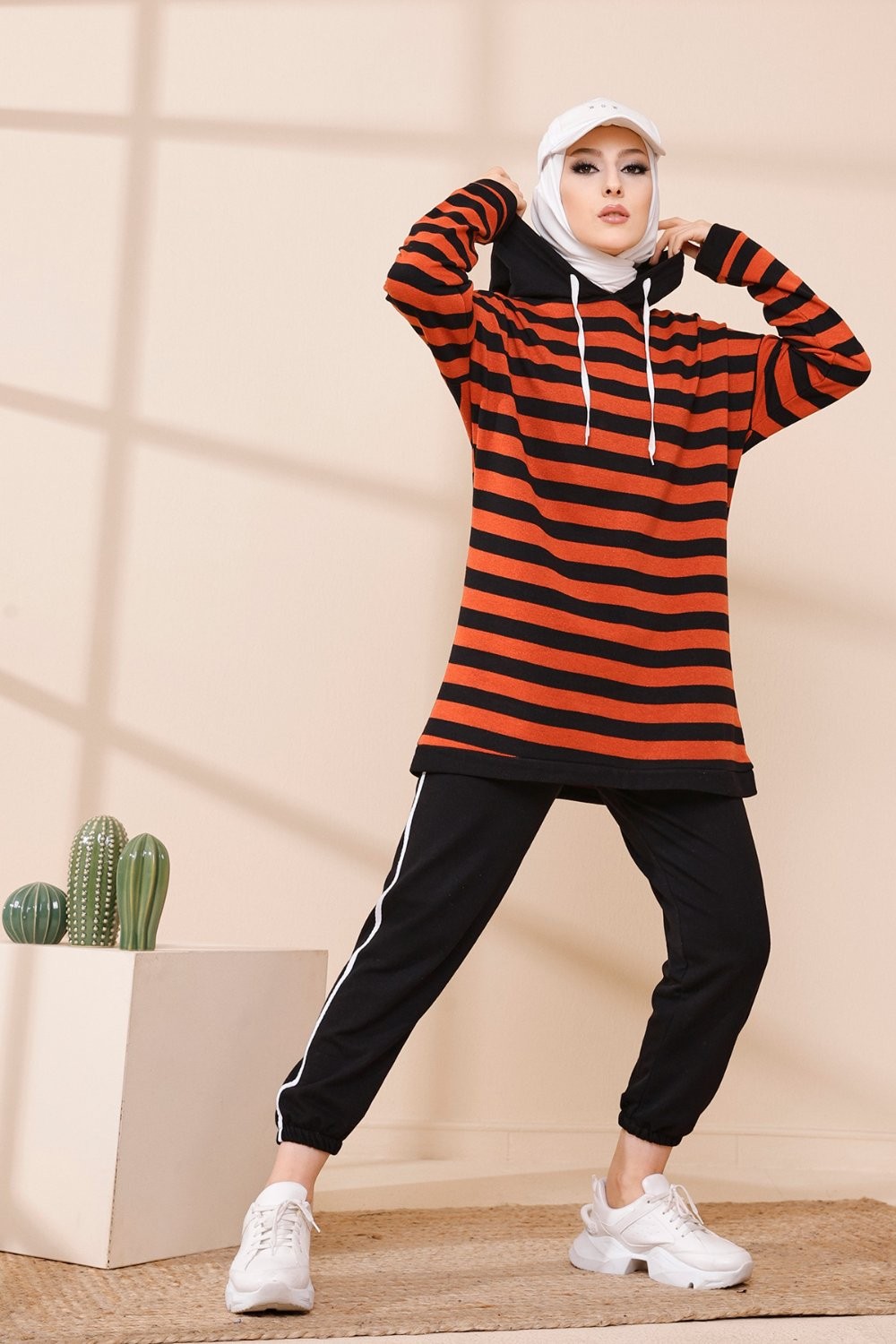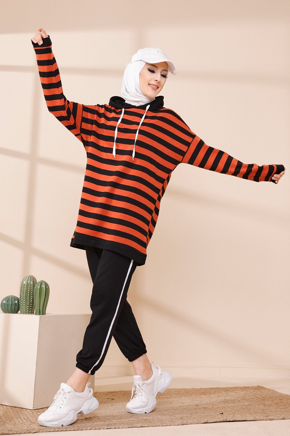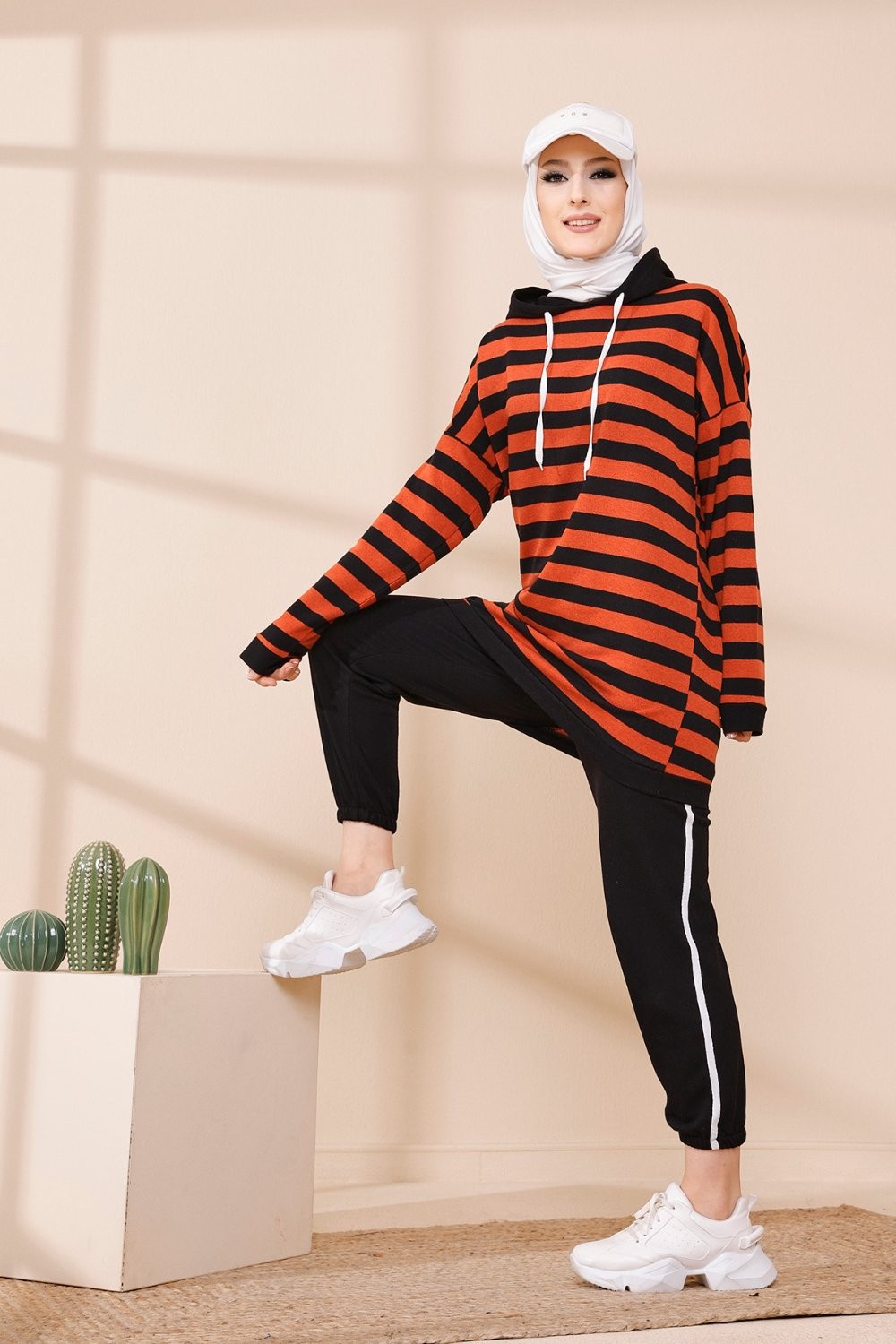 Survêtement hijab sport chic à capuche pour femme musulmane (deux pièces haut et bas) - Couleur noir et rouille - REF. 34577 (25.00 €)