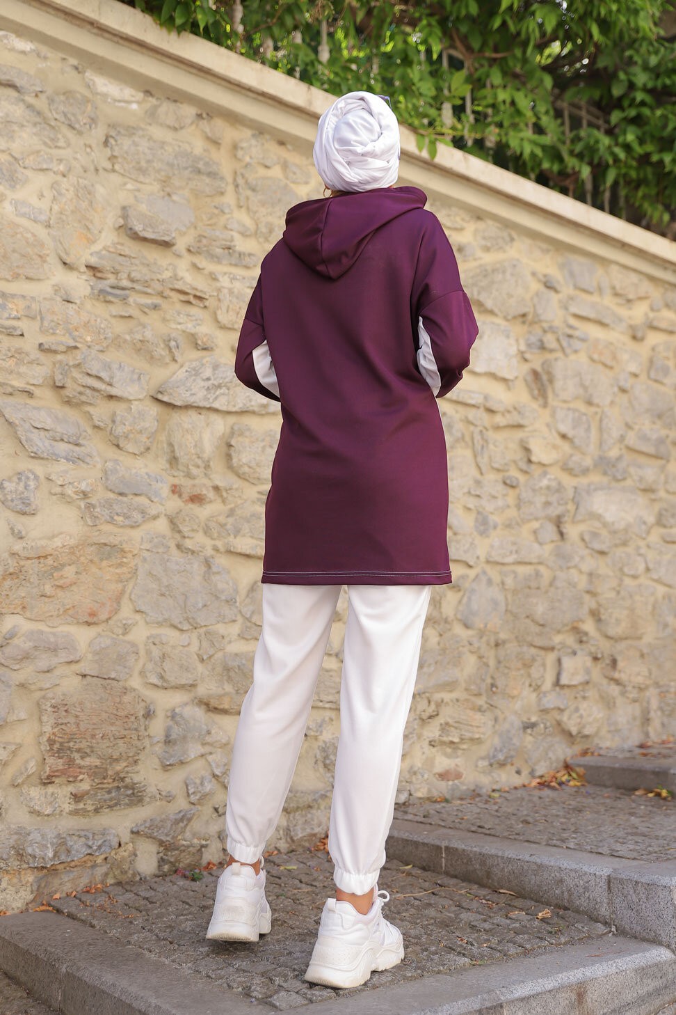 Robe longue sweat-shirt à capuche en coton (Hijab Sport pour femme) - Couleur violet - REF. 33237 (19.90 €)