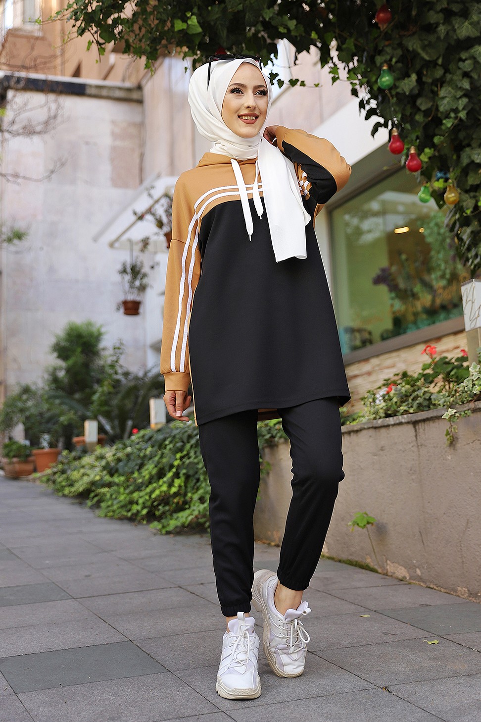 Survêtement femme (Vêtement Sport Hijab en ligne ) - Couleur noir et beige Vetement & Accessoire