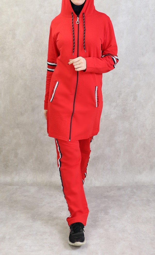 Survêtement femme "Never Guive Up" (Tenue Hijab sport) - Couleur rouge et blanc - REF. 31640 (29.00 €)