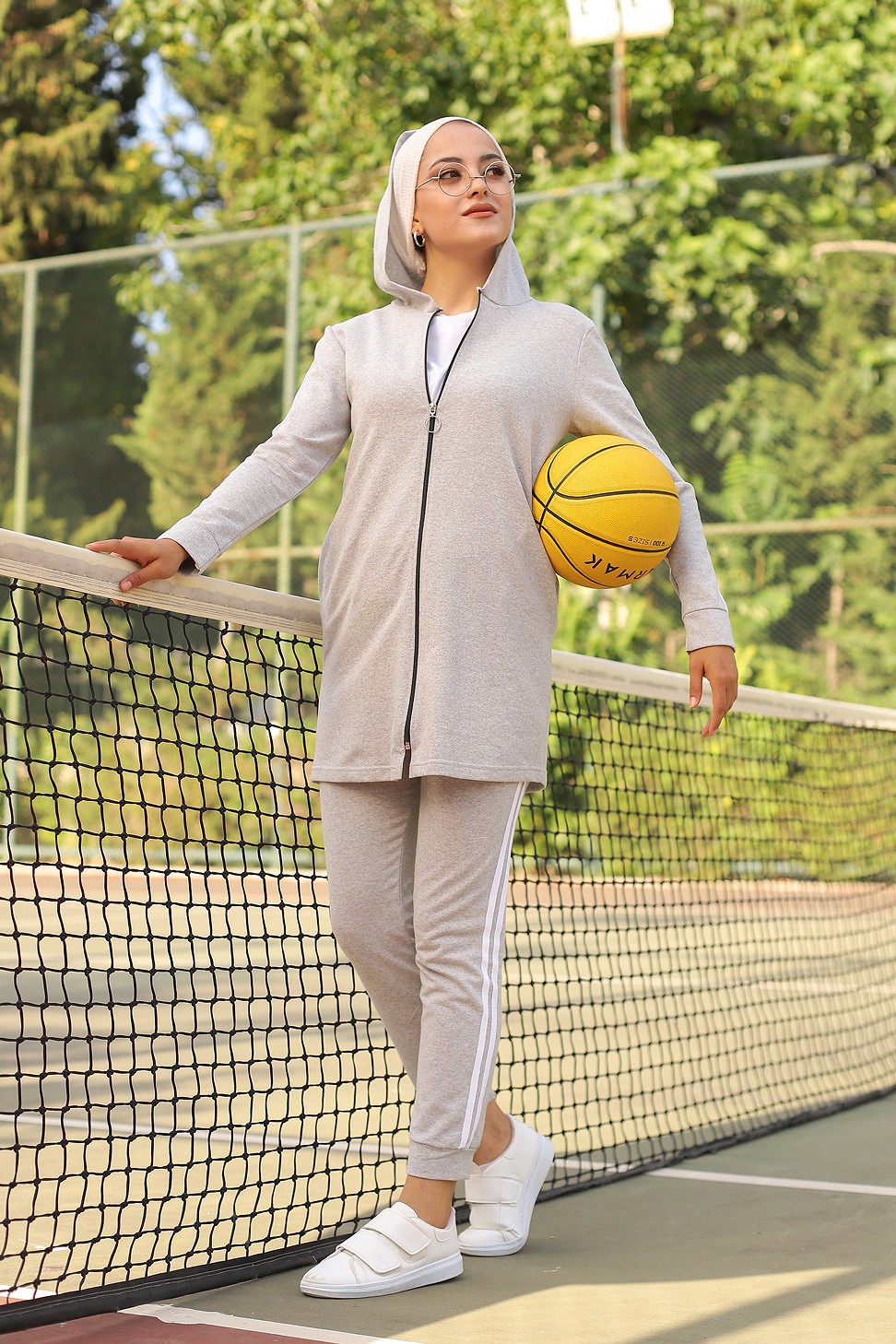 Survêtement "original" 2 pièces (Sweat-shirt et pantalon assorti) pour femme voilée - Couleur gris clair - REF. 32304 (28.00 €)