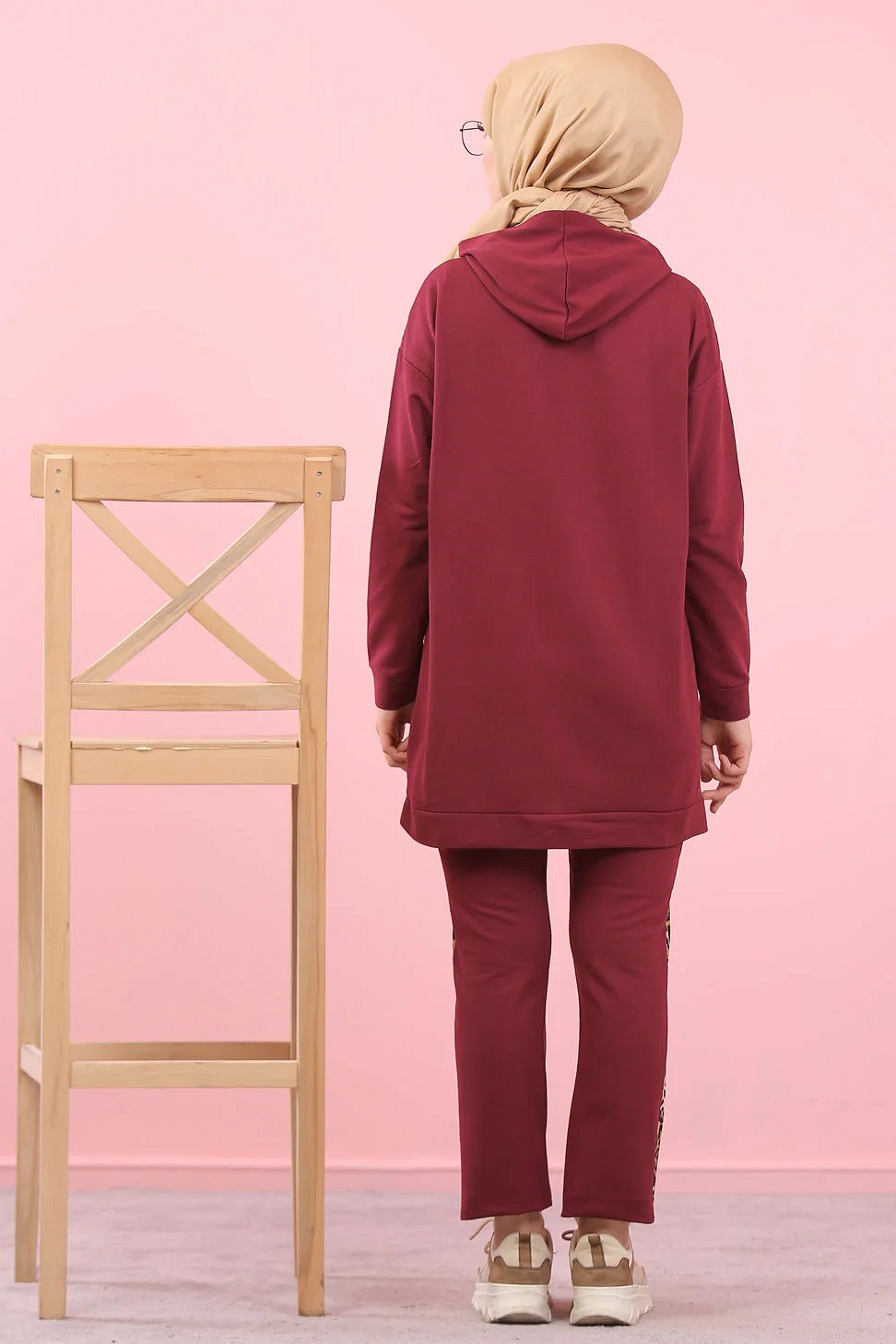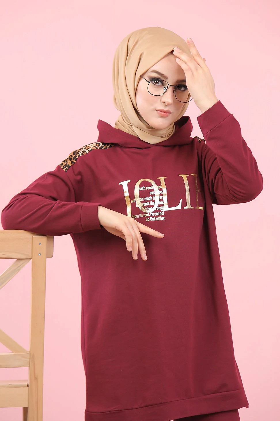 Survêtement femme motif panthère Tunique à capuche et Pantalon imprimé "Jolie" doré (Hijab Sport) - Couleur bordeaux Foncé Vetement & Accessoire