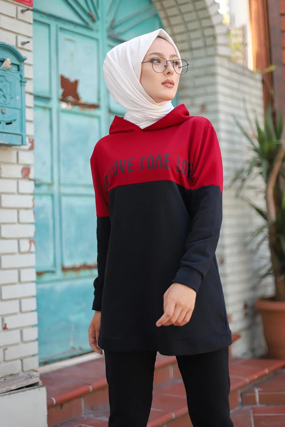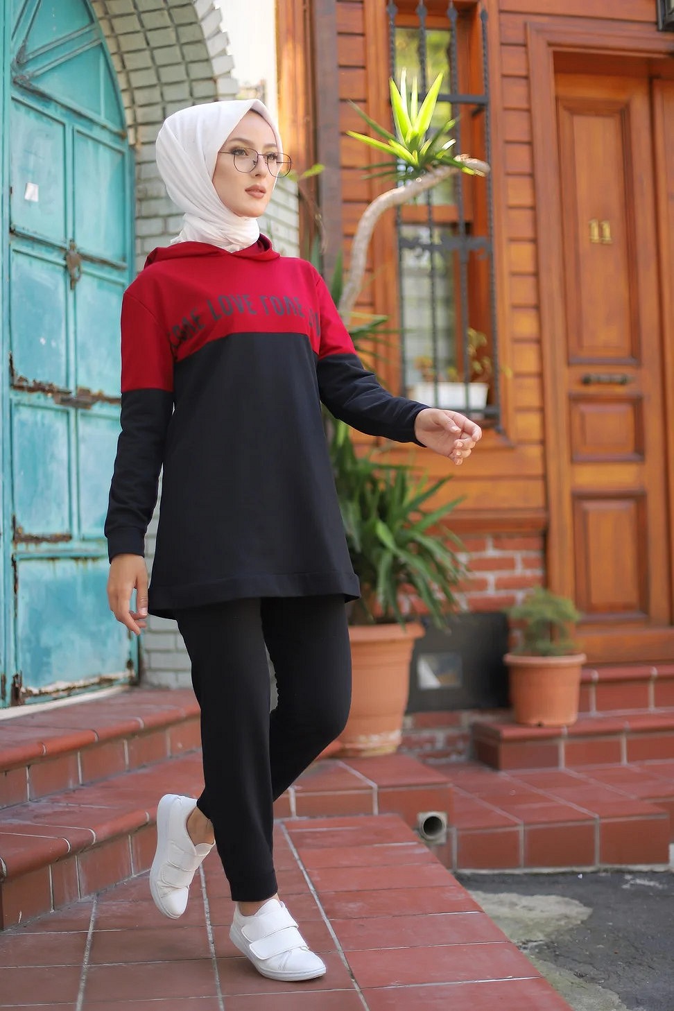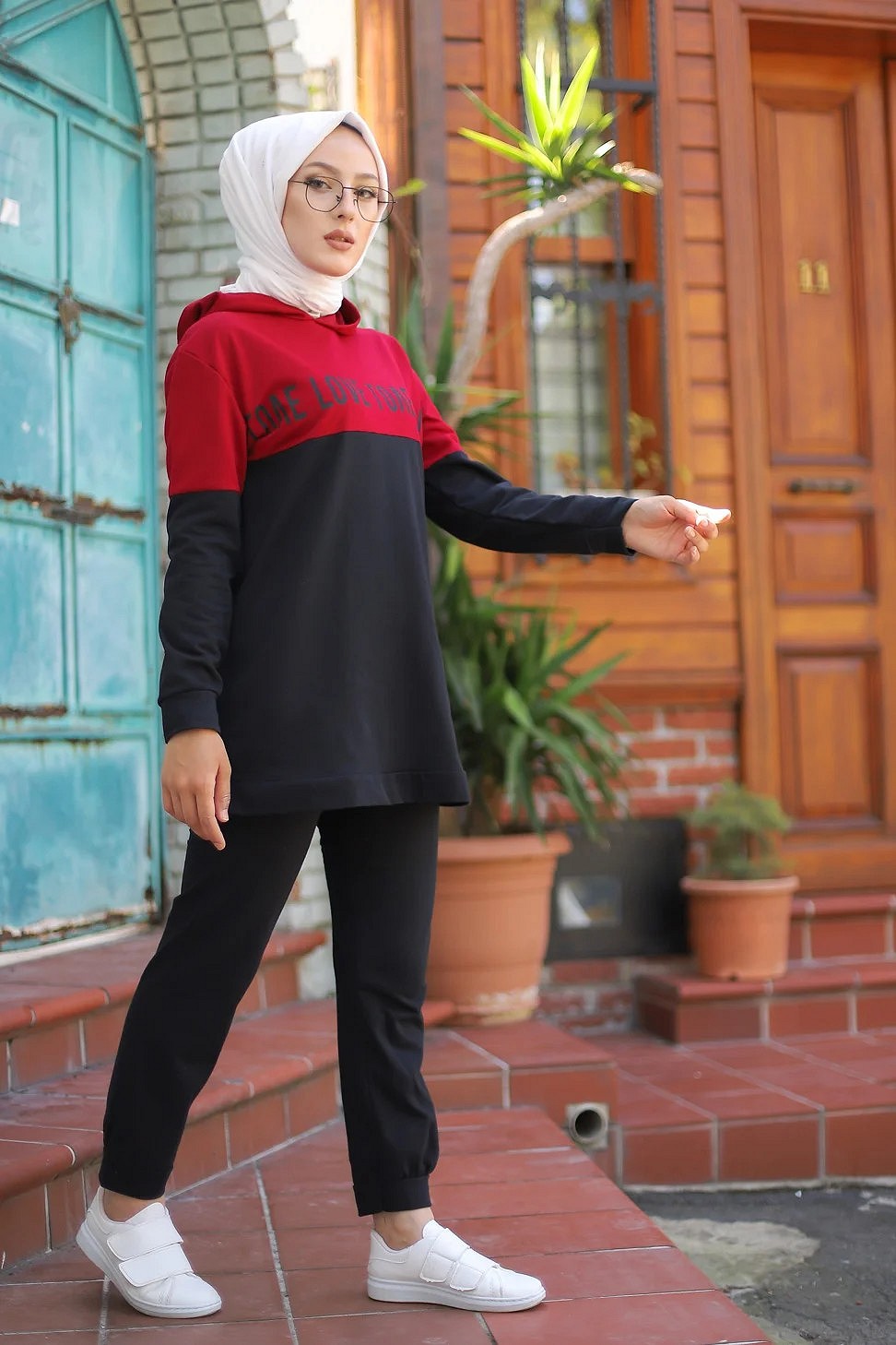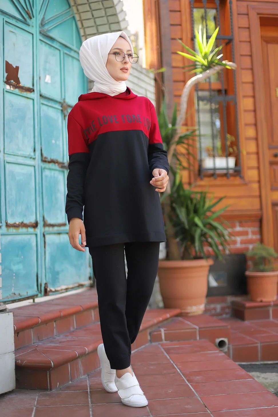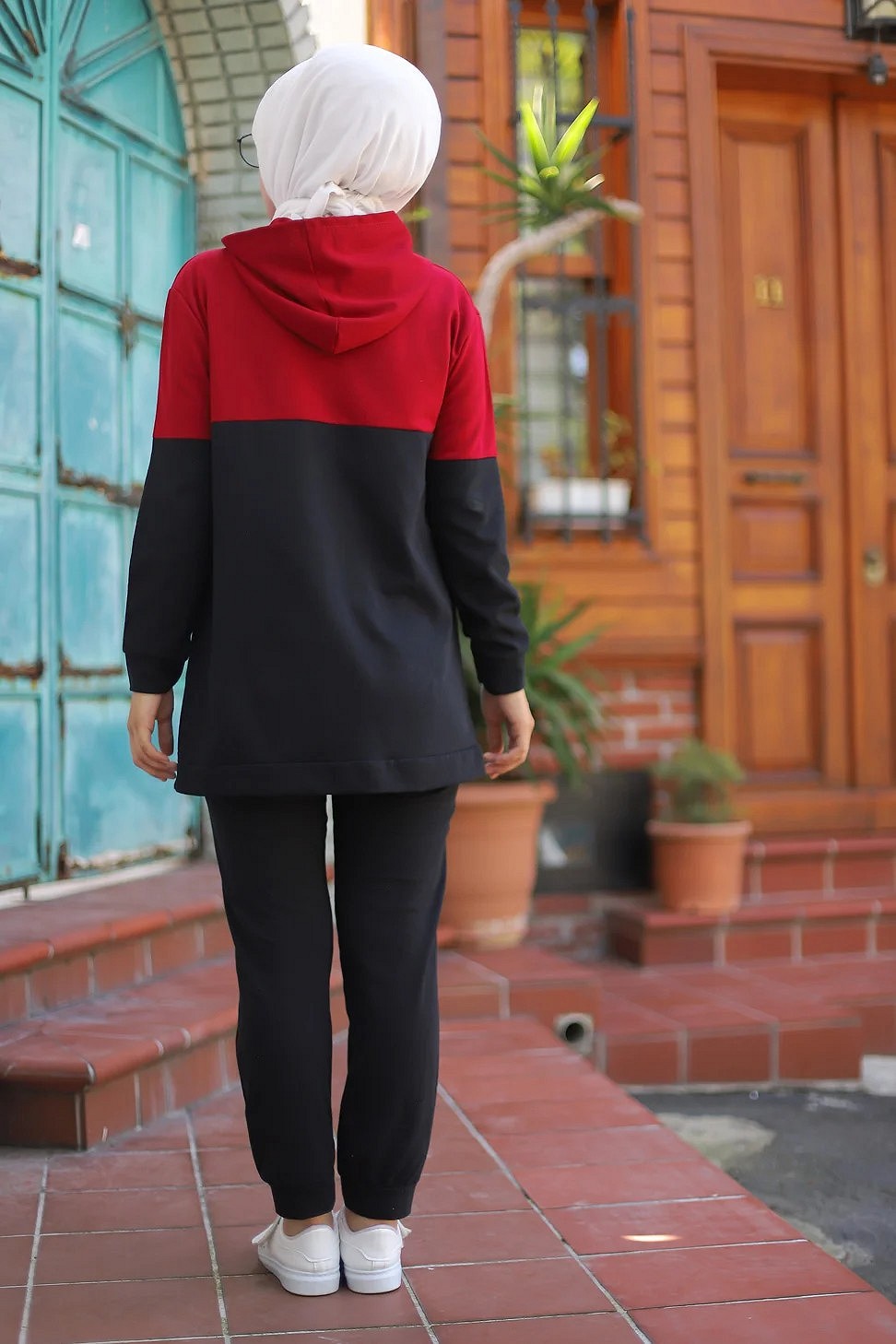 Survetement hijab sport a capuche pour femme musulmane (Ensemble Sportswear) - Couleur noir et bordeaux