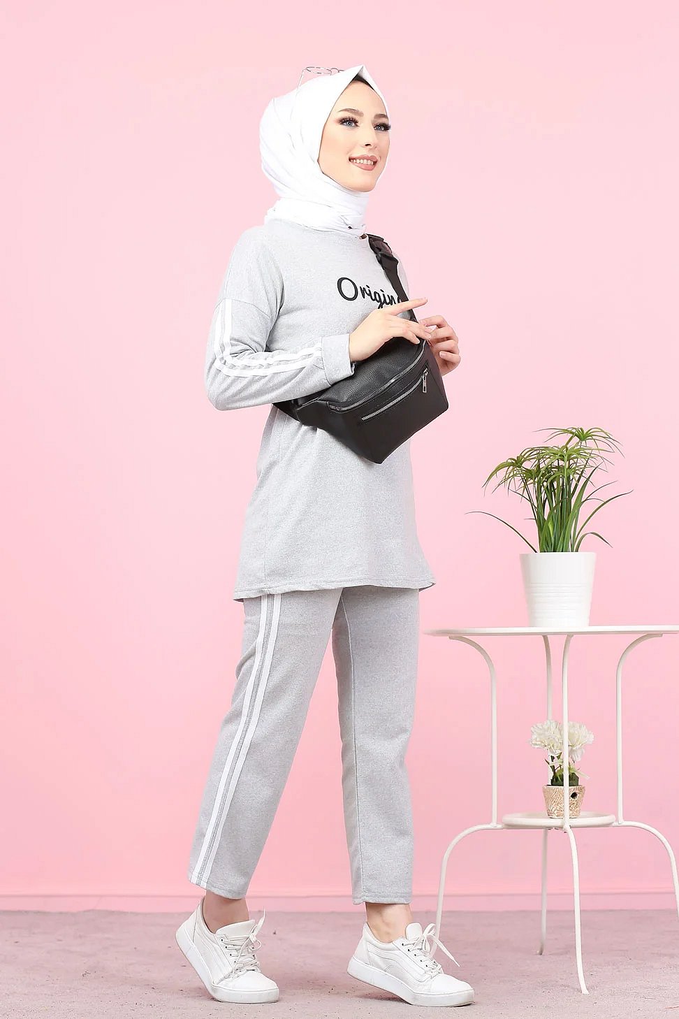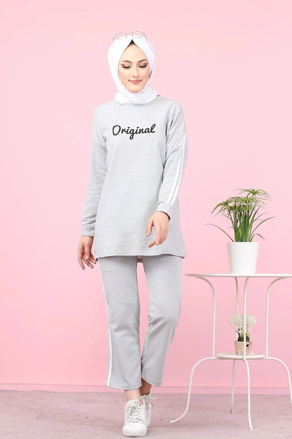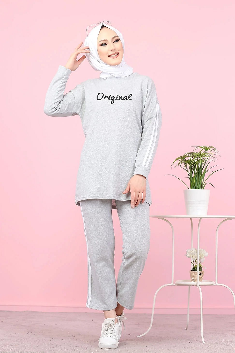 Survêtement "original" 2 pièces (Sweat-shirt et pantalon assorti) pour femme voilée - Couleur gris clair Vetement & Accessoire