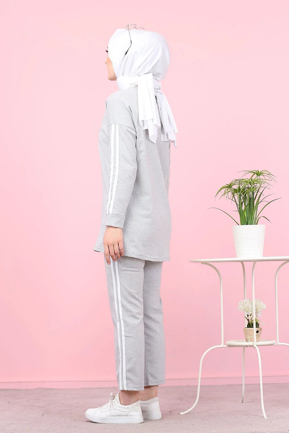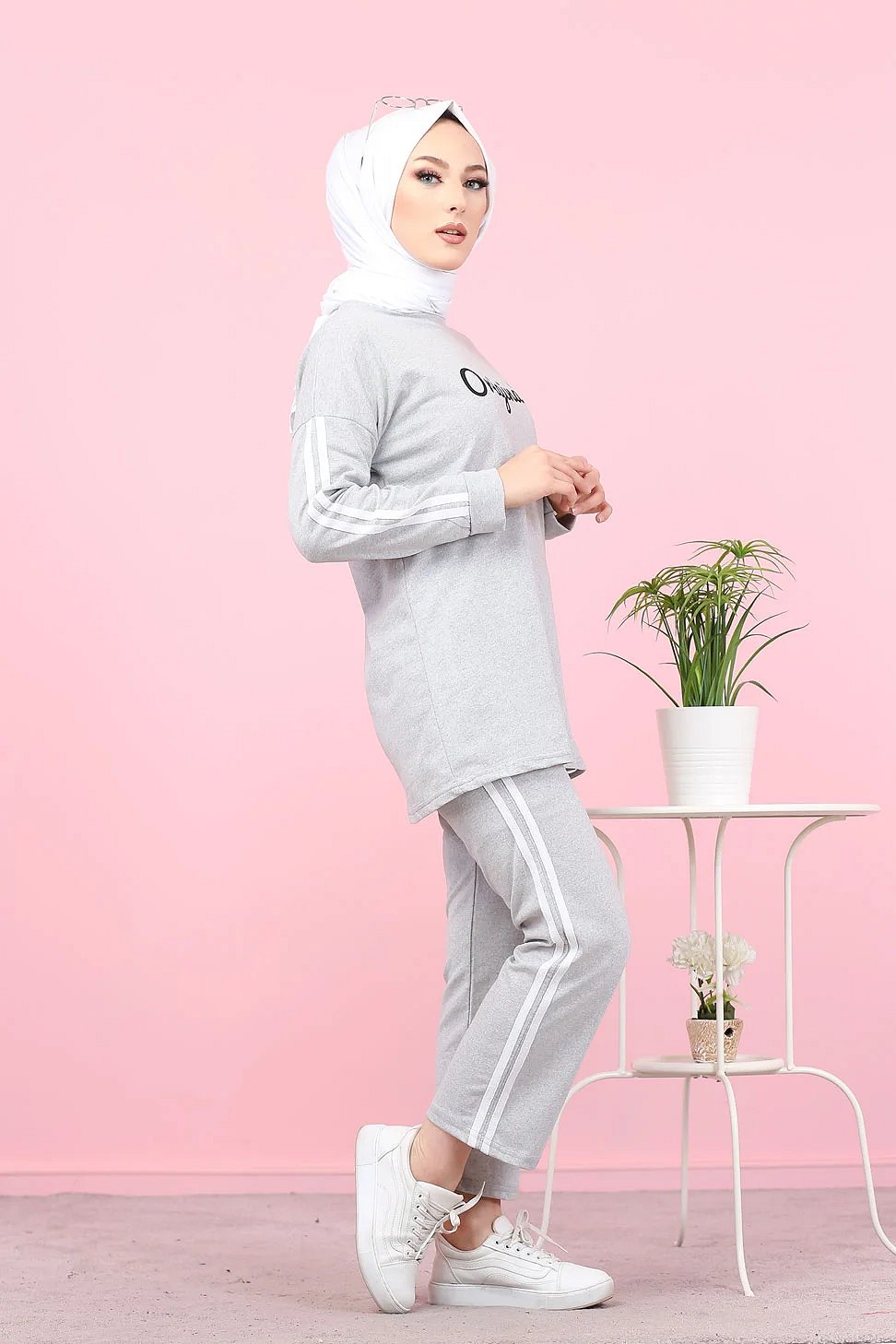 Survetement "original" 2 pieces (Sweat-shirt et pantalon assorti) pour femme voilee - Couleur gris clair