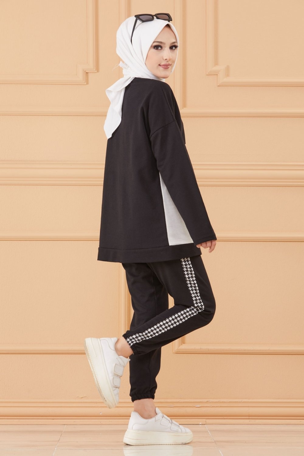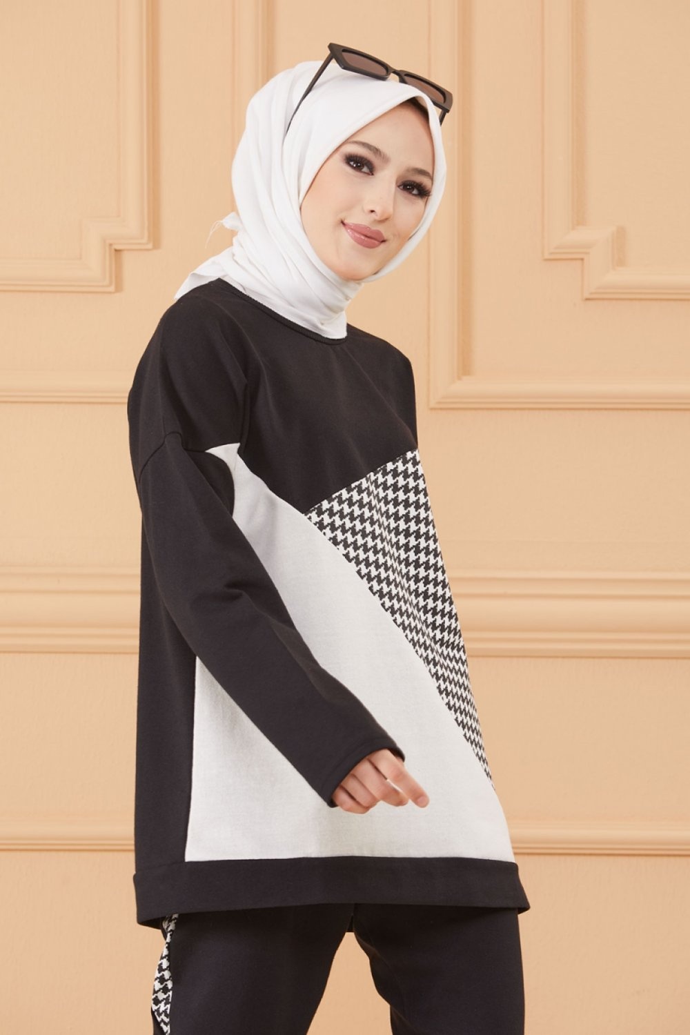 Survêtement original ample bicolore (Tenue Décontractée et Sport pour Hijab) - Couleur noir et blanc Vetement & Accessoire