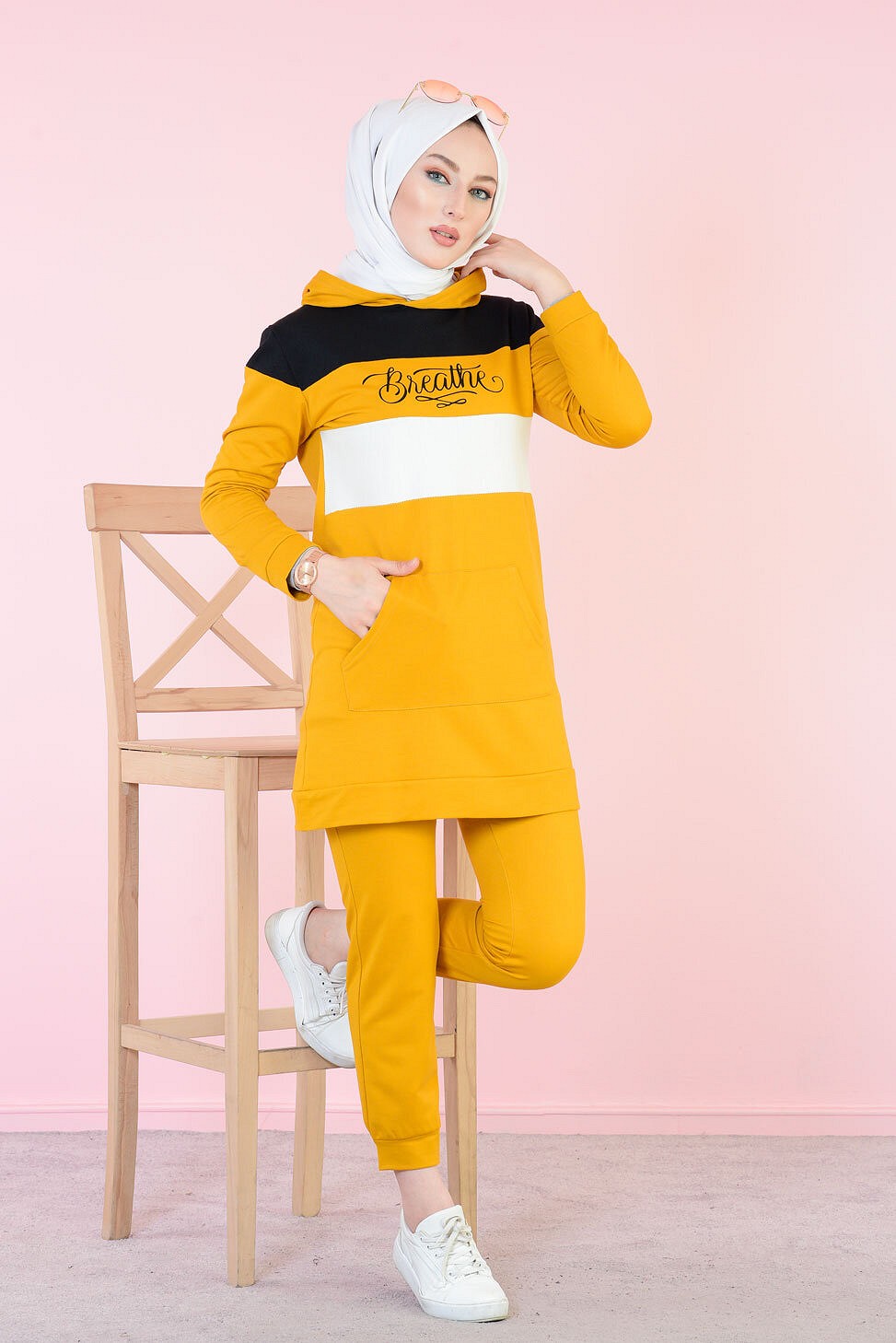 Ensemble sport deux pièces (haut et bas assortis) avec grandes poches et capuche, parfait pour le quotidien ou vos activités sportives. On aime sa coupe tendance pensée pour les femmes actives. Conçu dans une matière coton très qualitative.