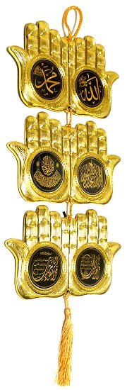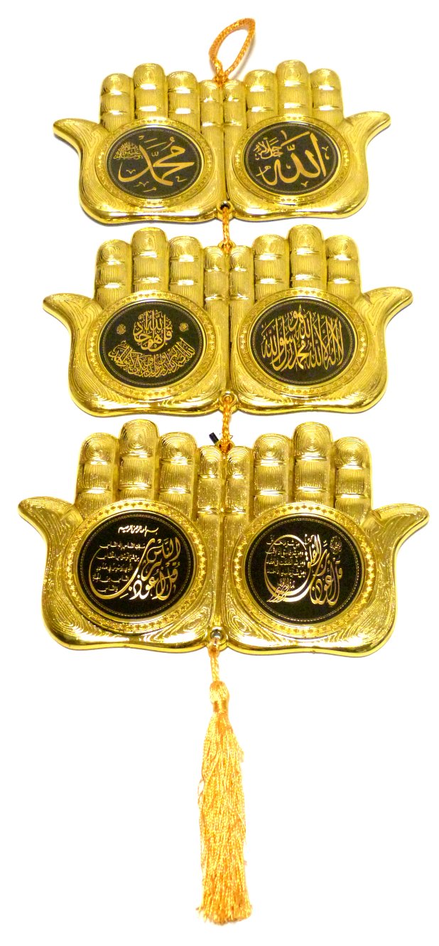 Suspension murale doree decorative en 3 elements sous forme de mains en signe d'invocation