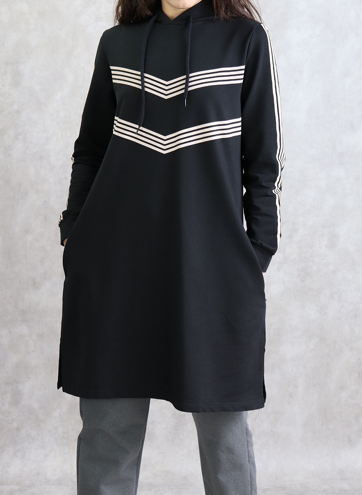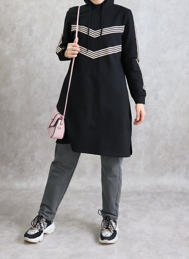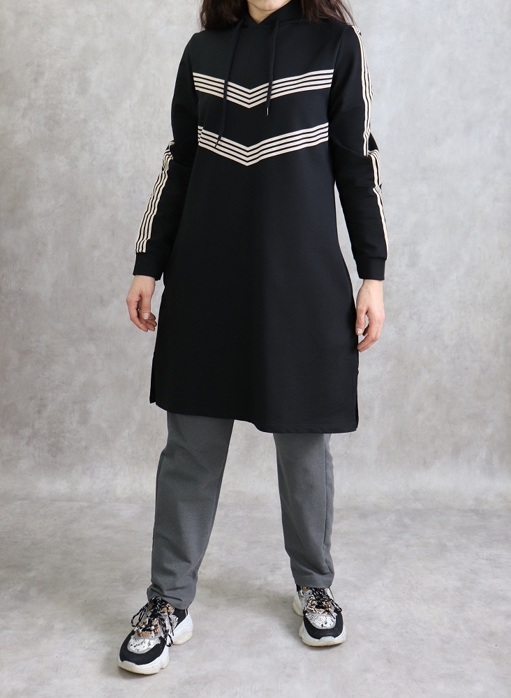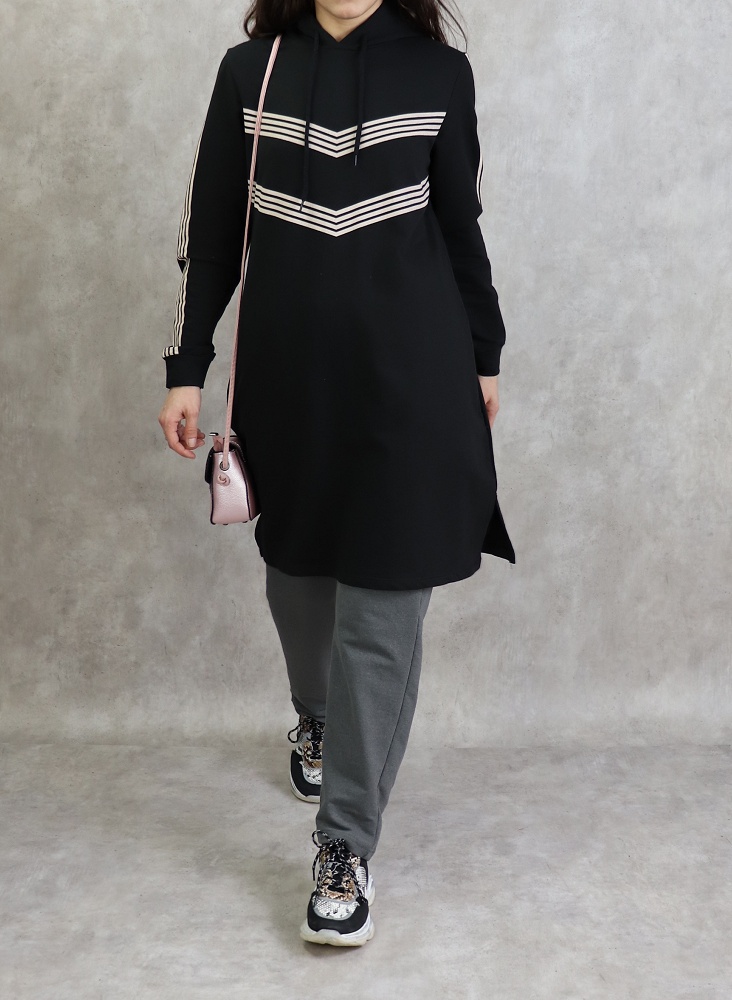 Tunique pour femme (Vêtement Hijab Style Sport et Décontracté) - Rayures de couleur noir - REF. 37517 (18.00 €)