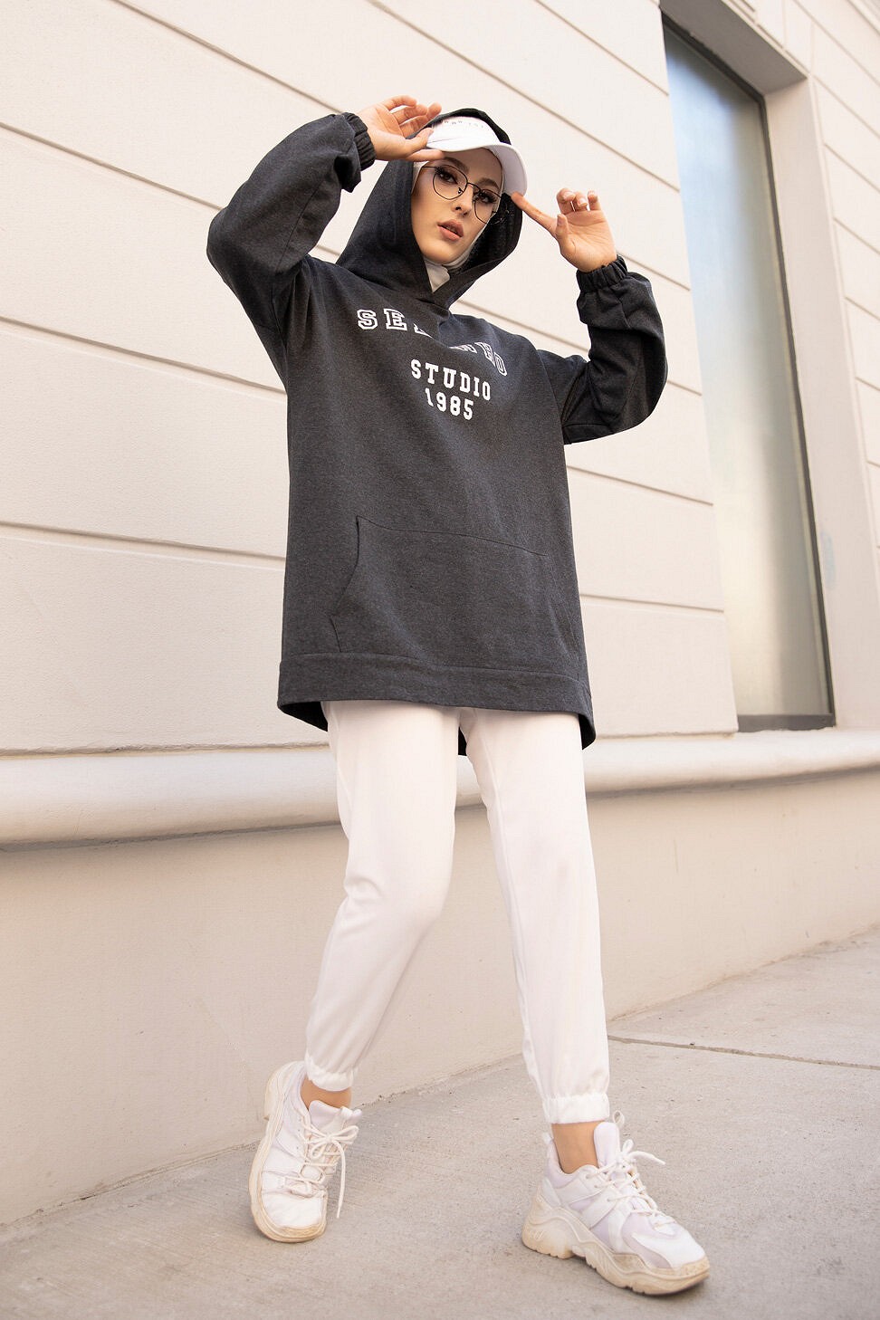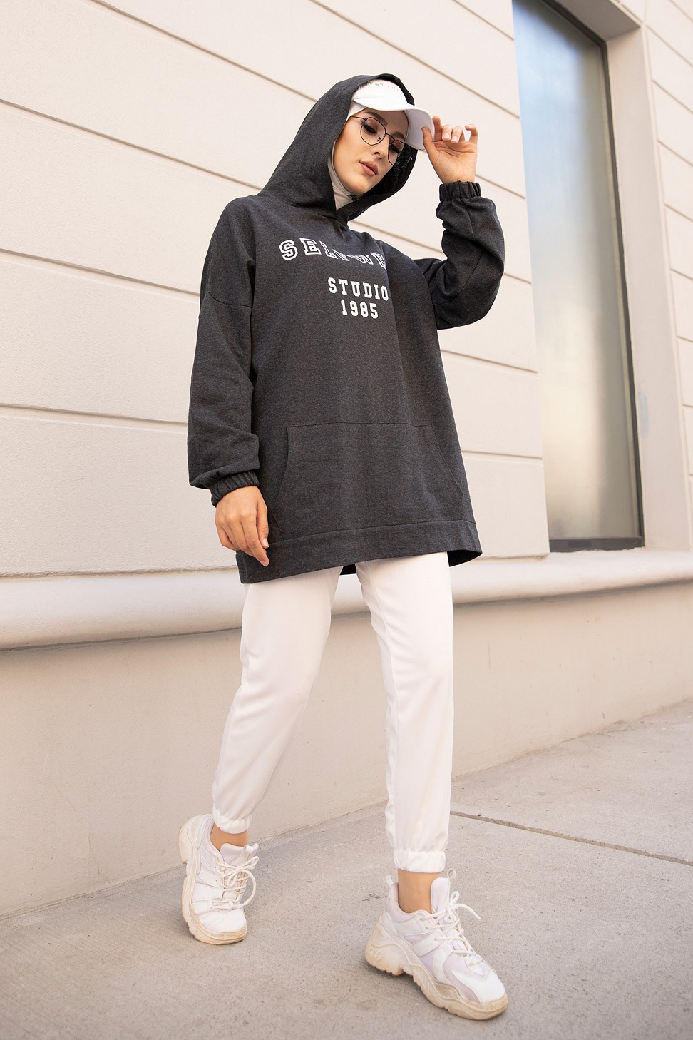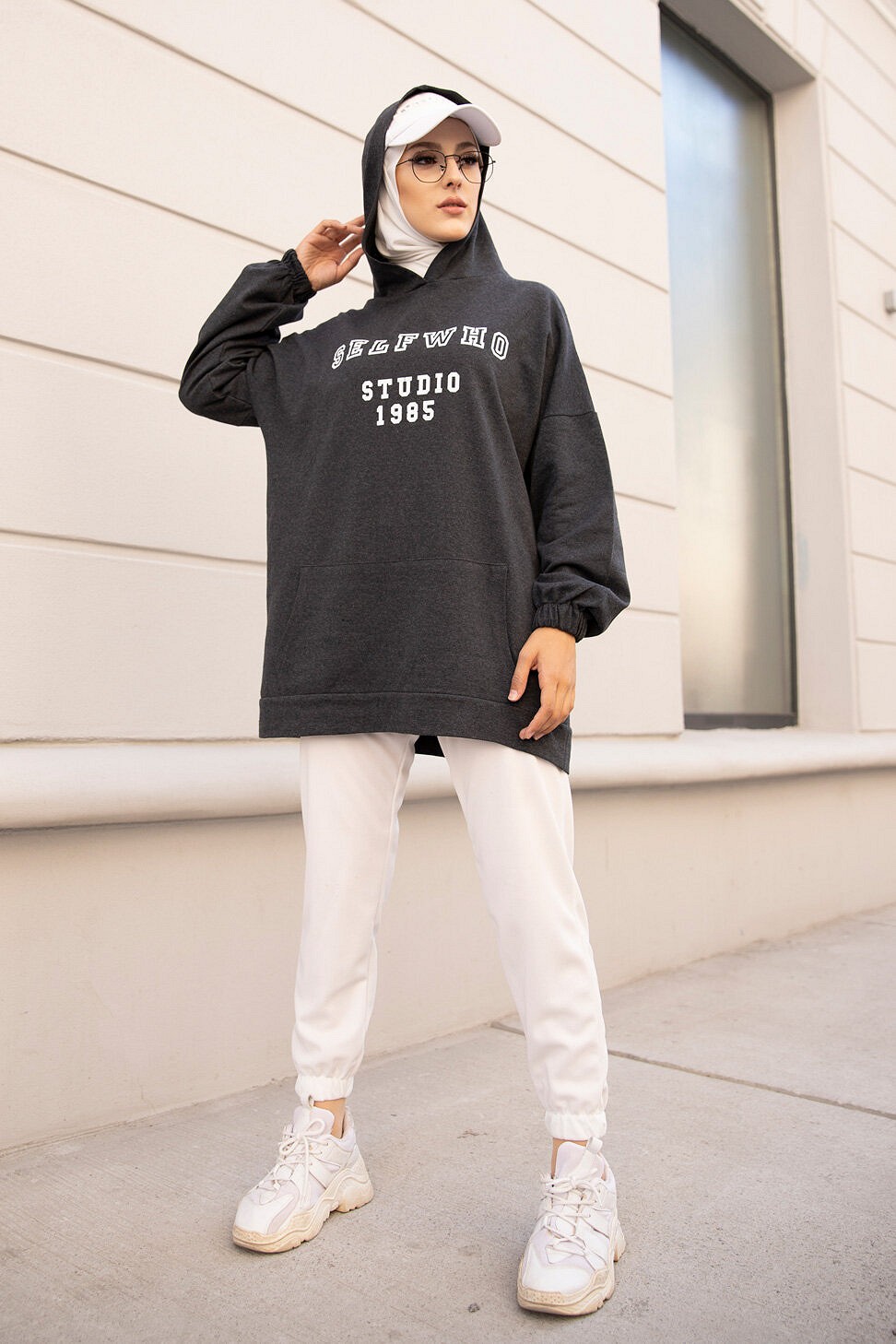 Ensemble Sweat à capuche et pantalon - Survêtement pour femme musulmane - Couleur blanc, noir et Brique - REF. 32540 (28.00 €)