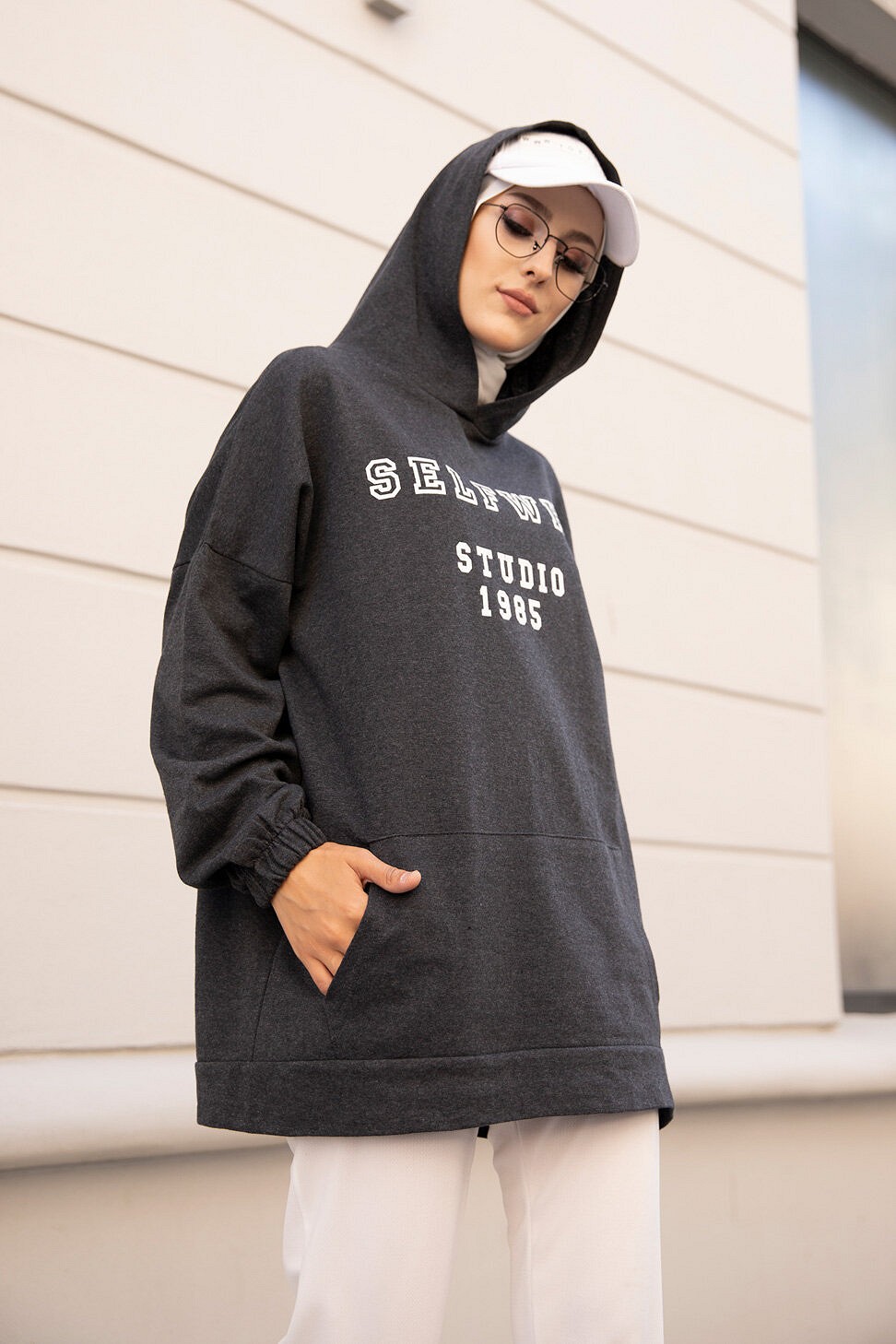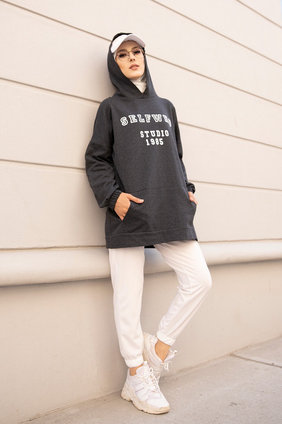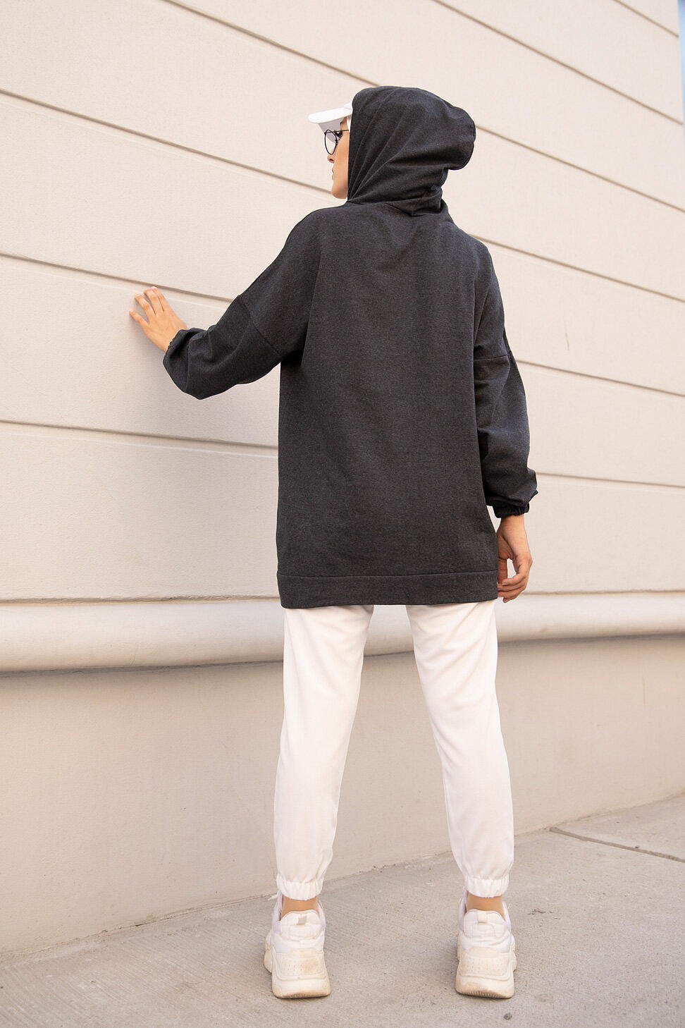 Tunique type sweat-shirt à capuche pur femme (Tenue Hijab décontracté et moderne) - Couleur beige - REF. 38286 (22.00 €)