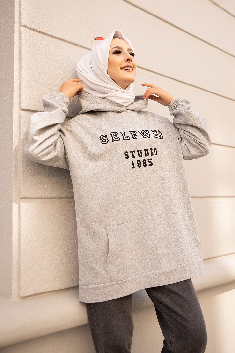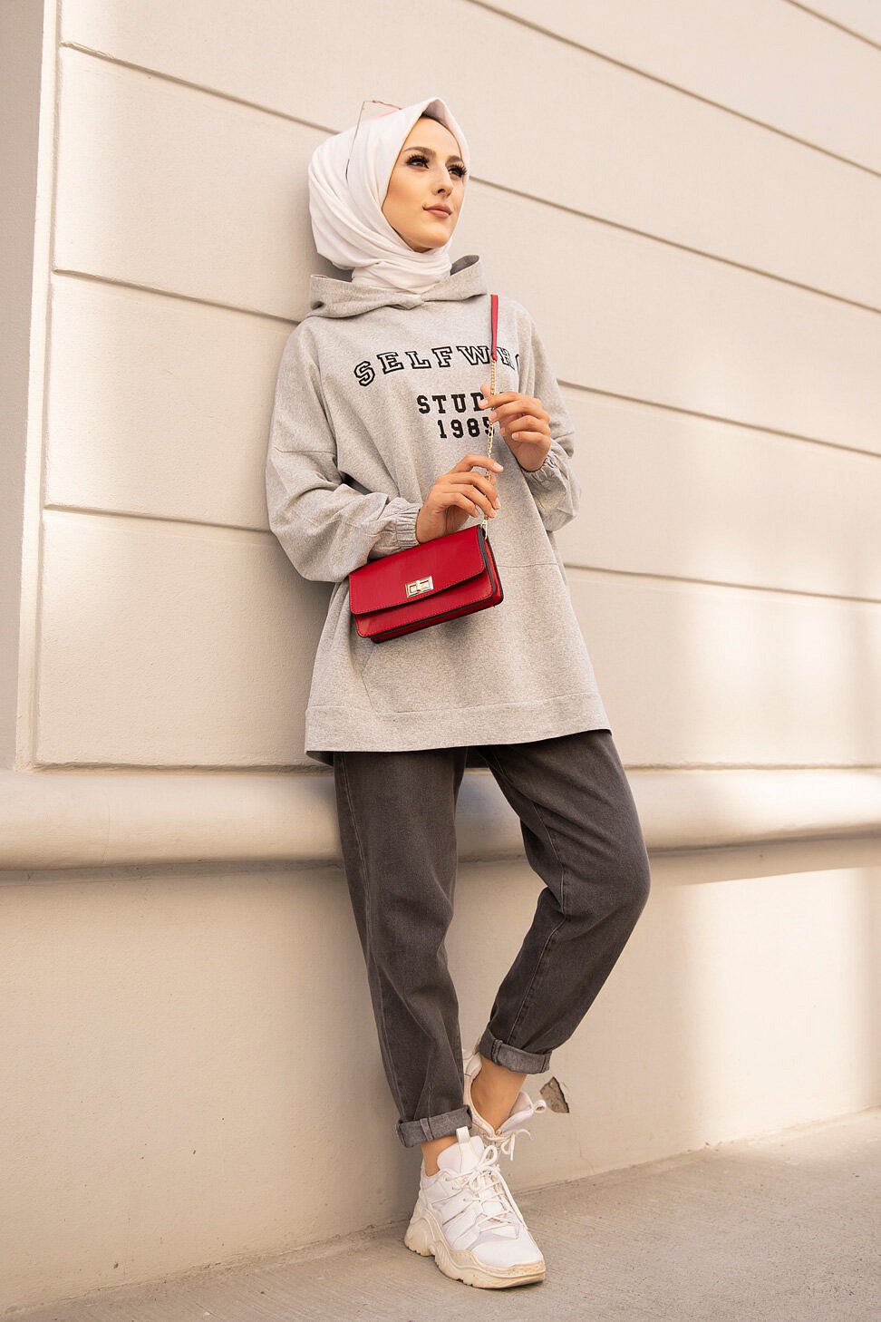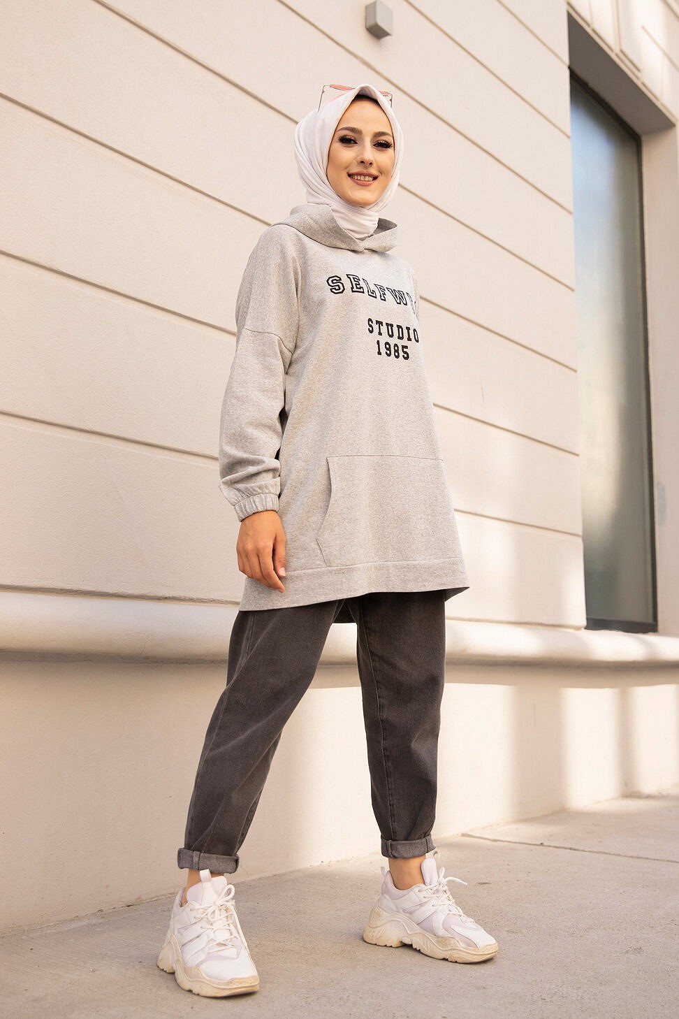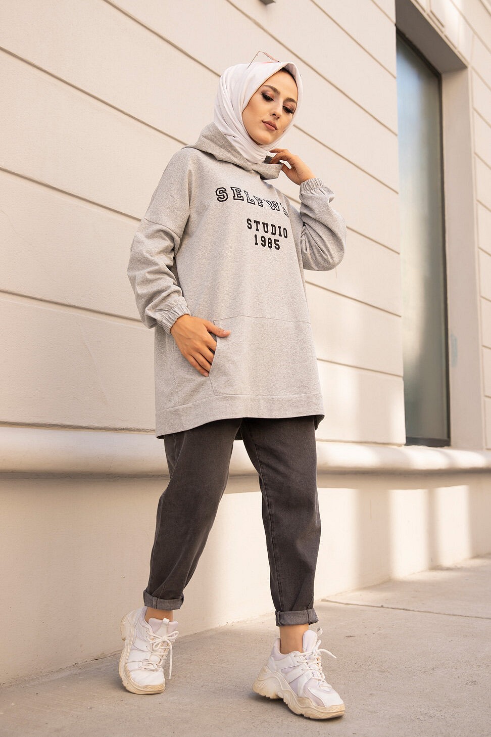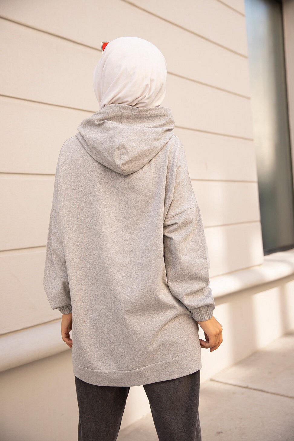 Tunique type sweat long à capuche (Vêtement de tous les jours pour Hijab) - Couleur gris clair - REF. 35429 (22.00 €) - En Promotion à 16.90 €