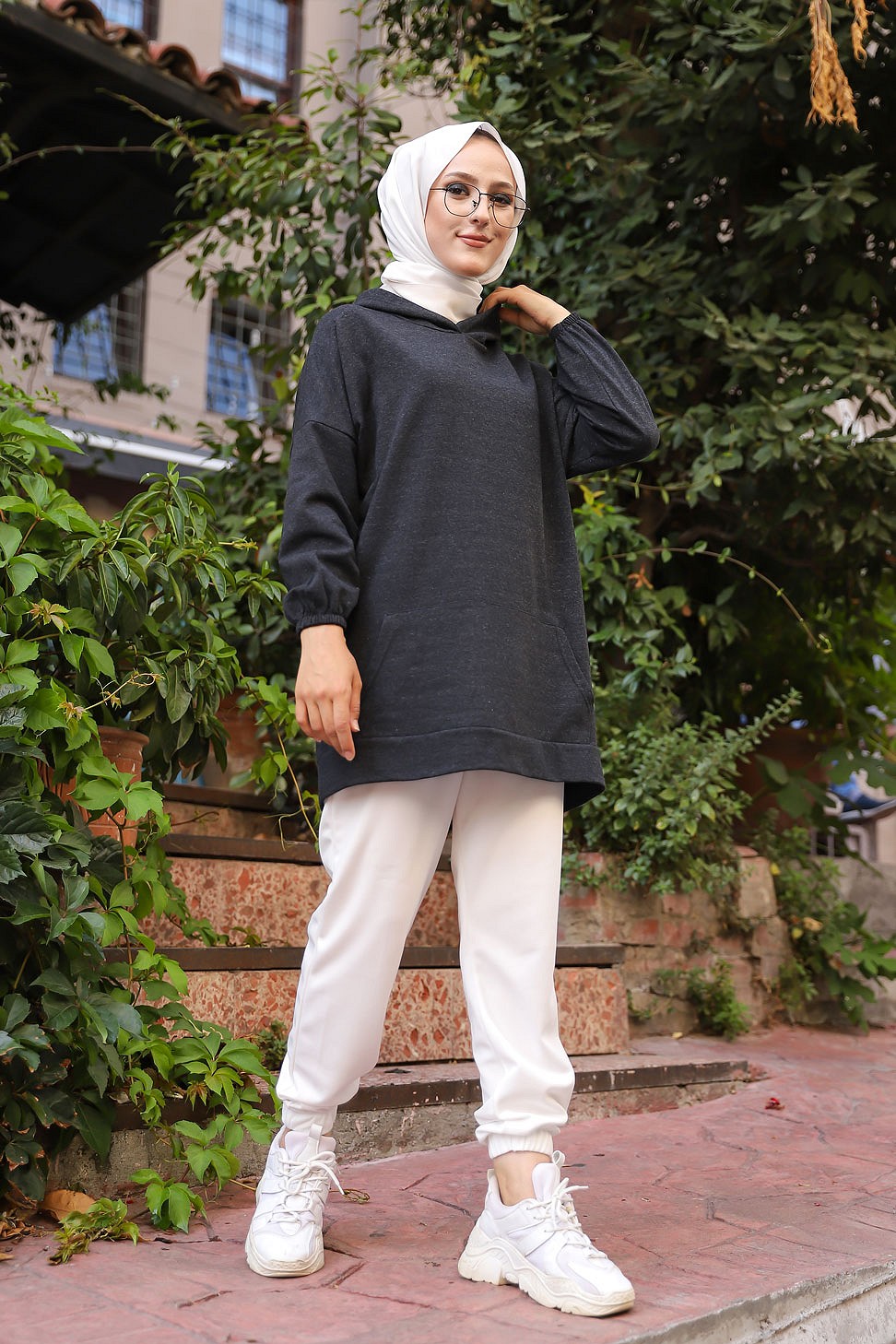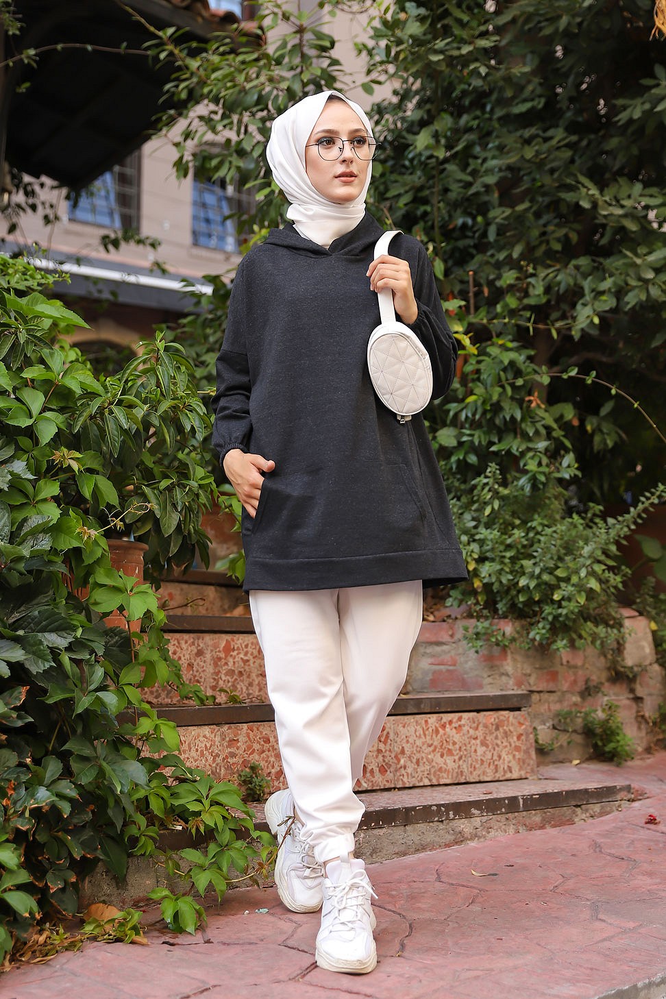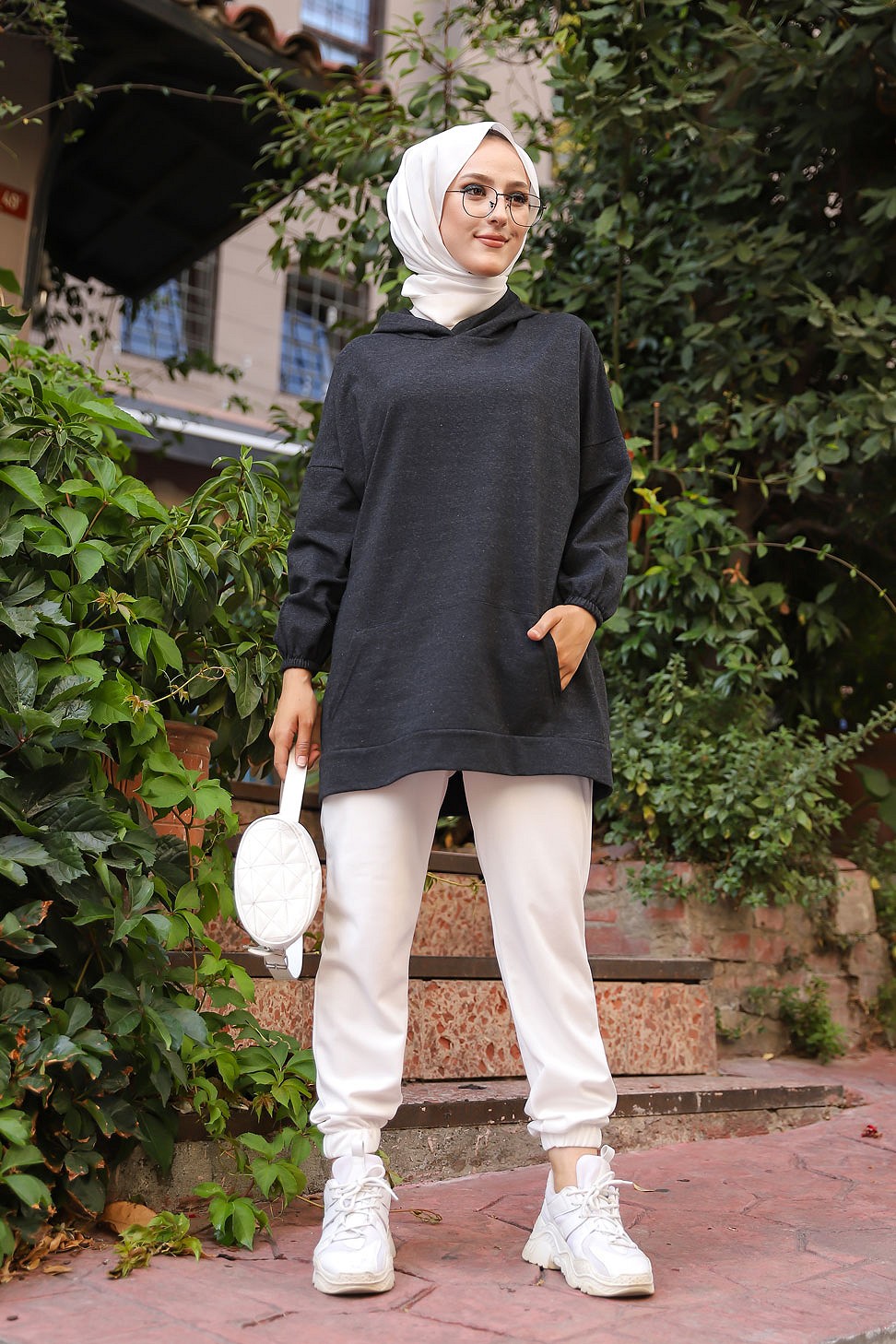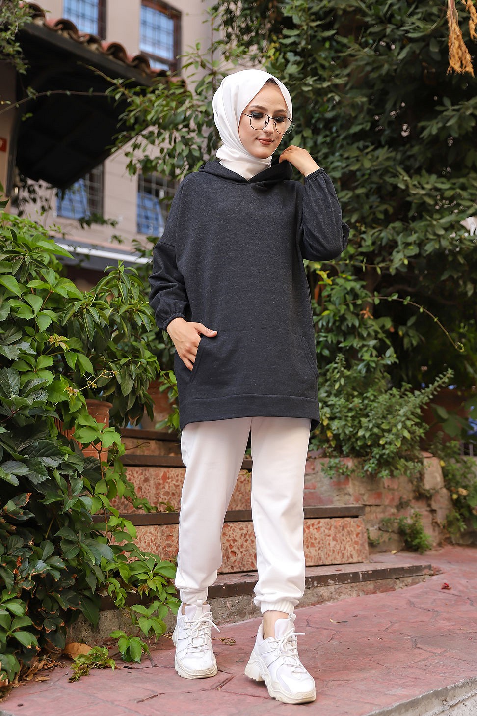 Tunique avec capuche pour femme (Tenue hijab moderne) - Couleur anthracite et bleu - REF. 35686 (23.00 €)