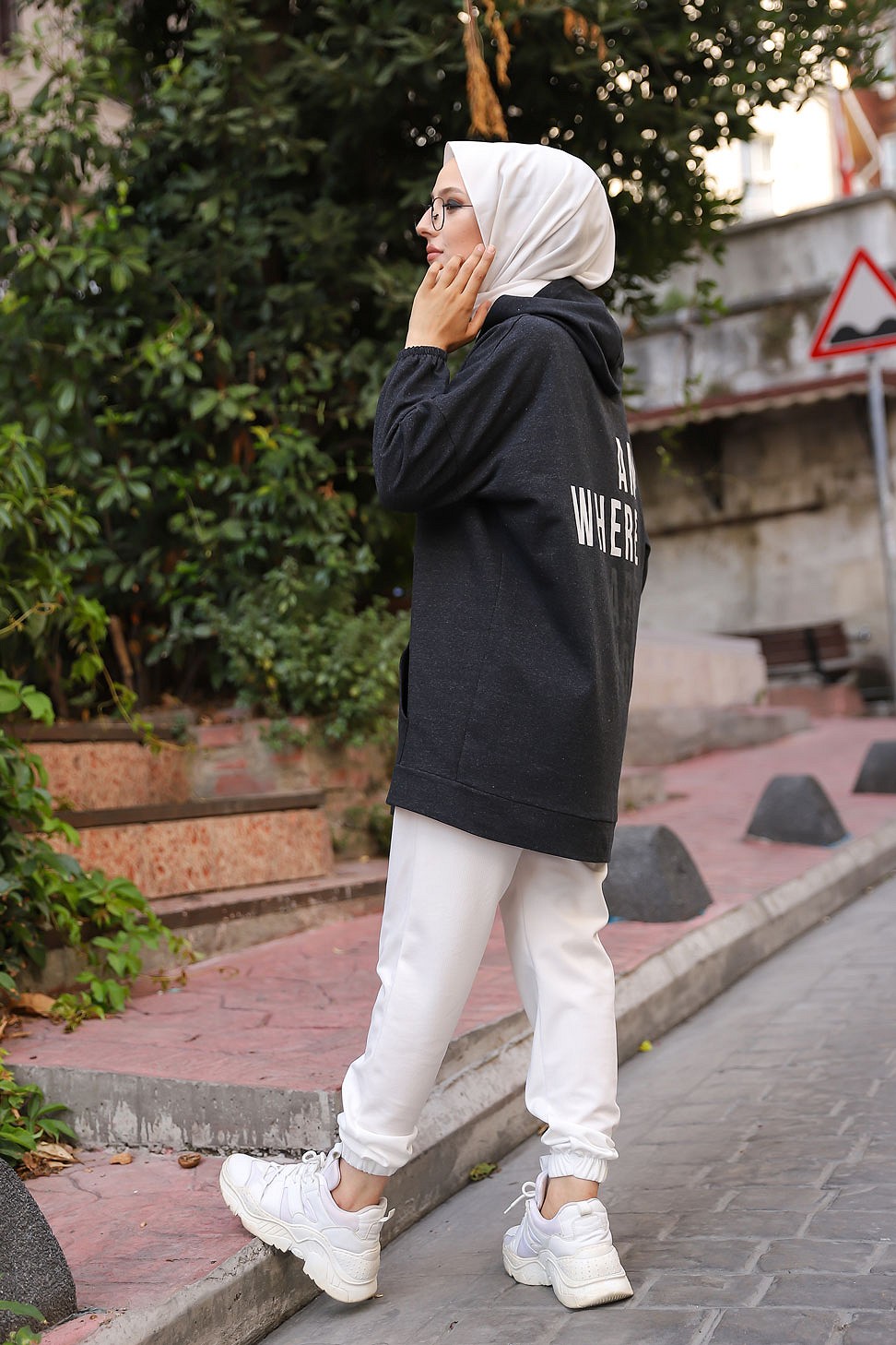 Sweat avec capuche pour femme inscription au dos "I am where are you?" (Mouslima Sportswear) - Couleur anthracite Vetement & Accessoire