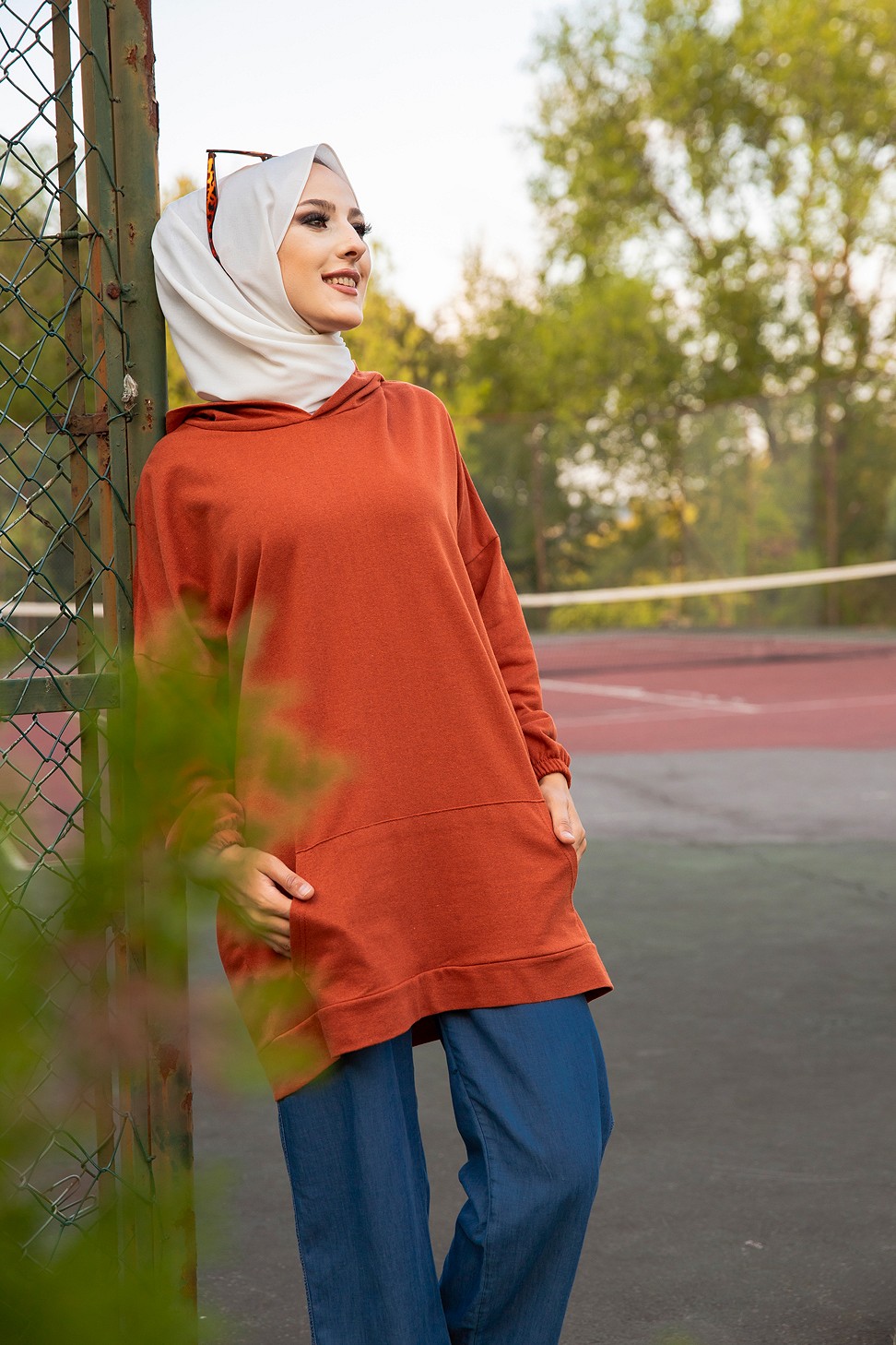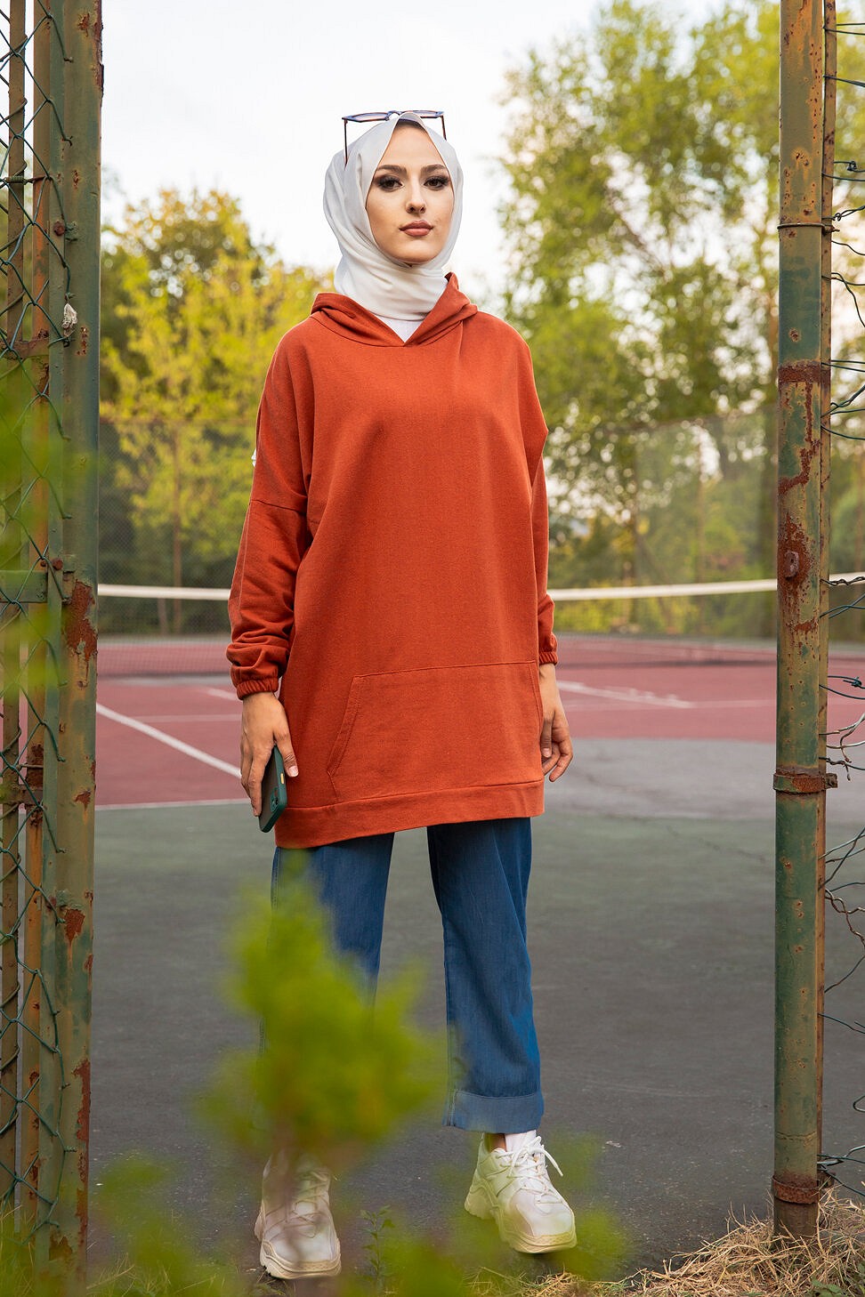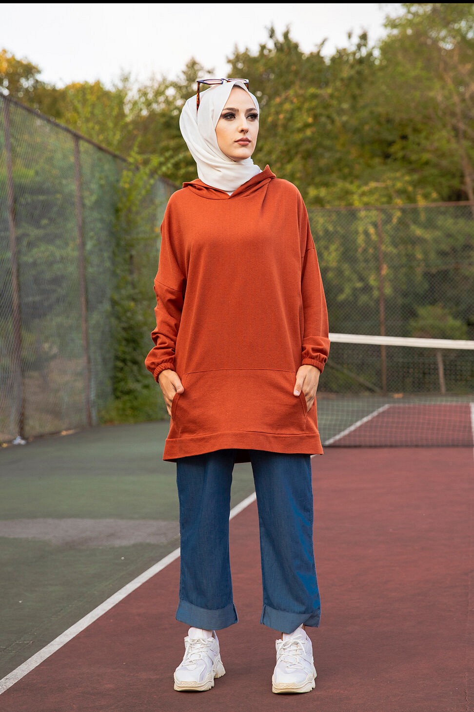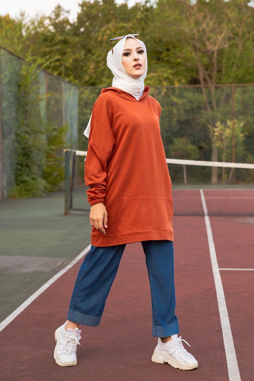 Robe longue style sport pour femme voilée (Robes hijab moderne pas cher) - Couleur Brique - REF. 34610 (19.90 €)