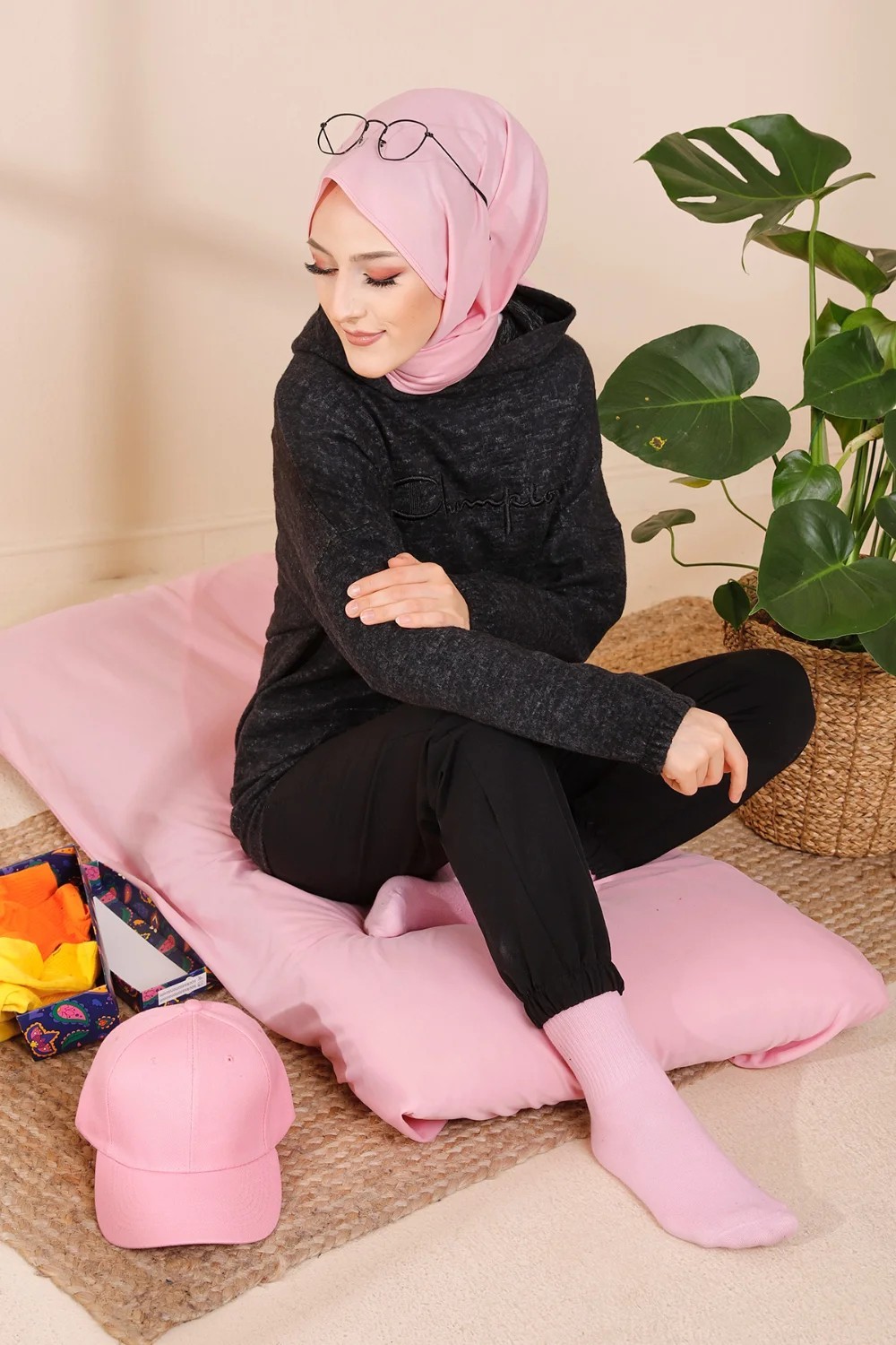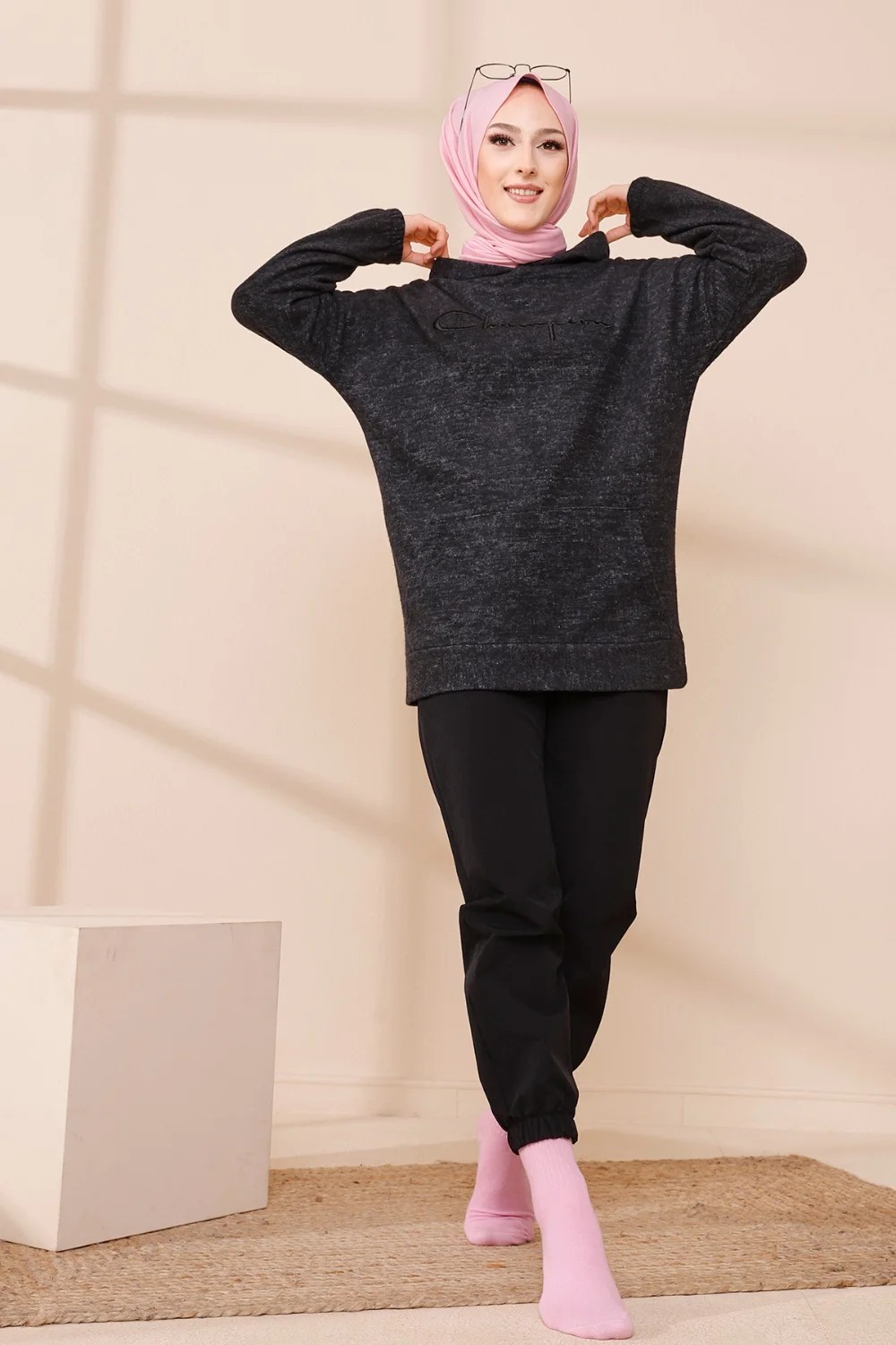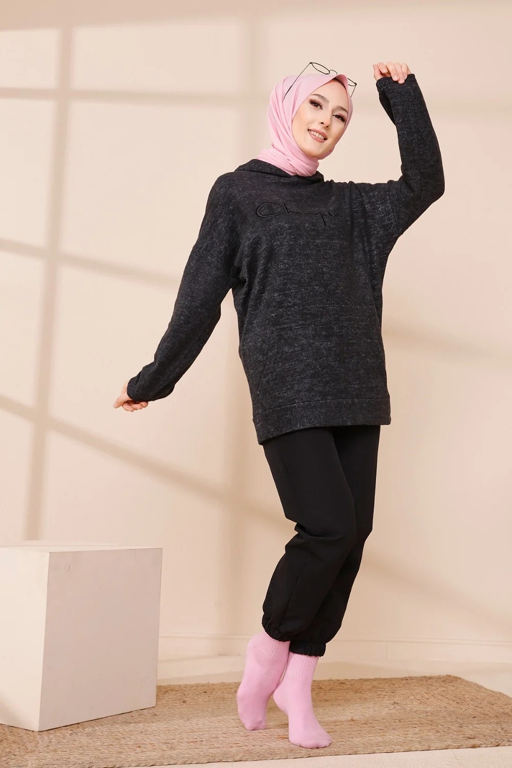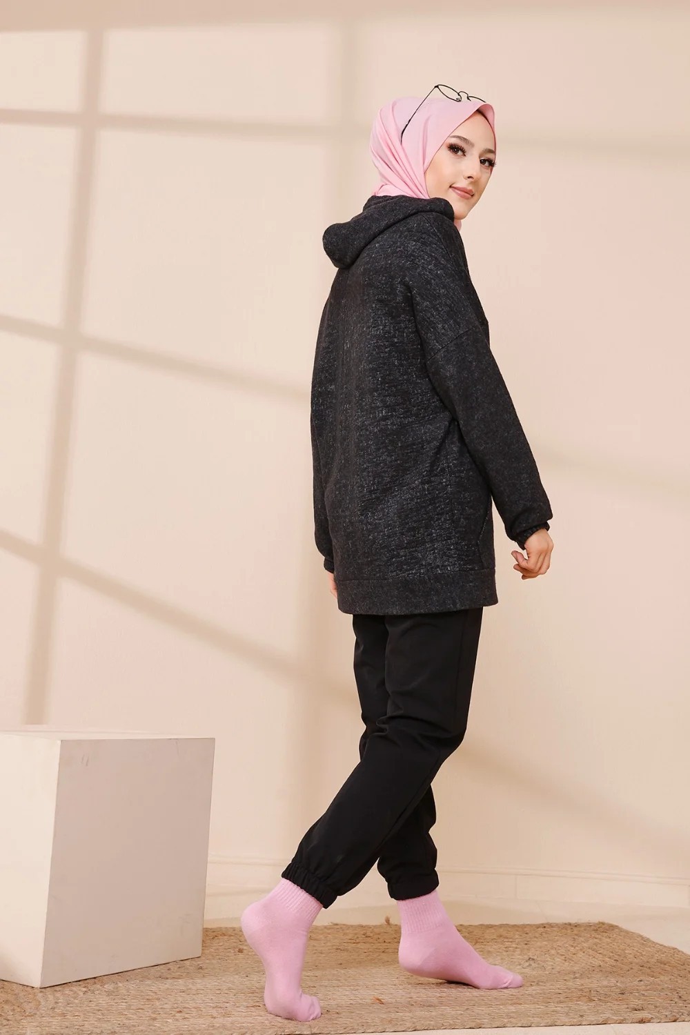 Tunique avec capuche pour femme (Vêtement décontracté mastour pour hijab) - Couleur gris foncé - REF. 35557 (23.00 €)