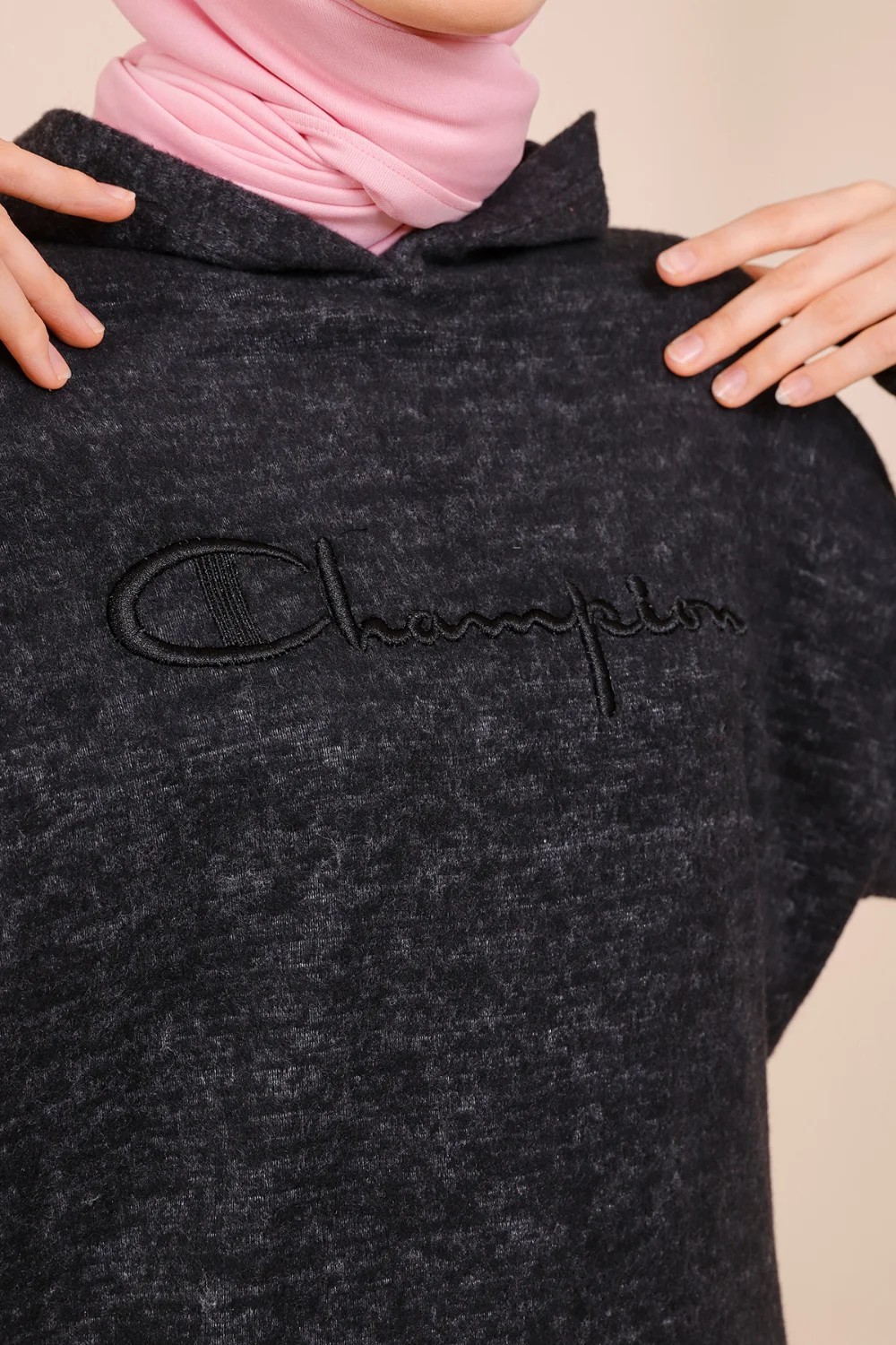 Sweat femme avec capuche brode "Champion" (Saison Automne-Hiver) - Couleur noir