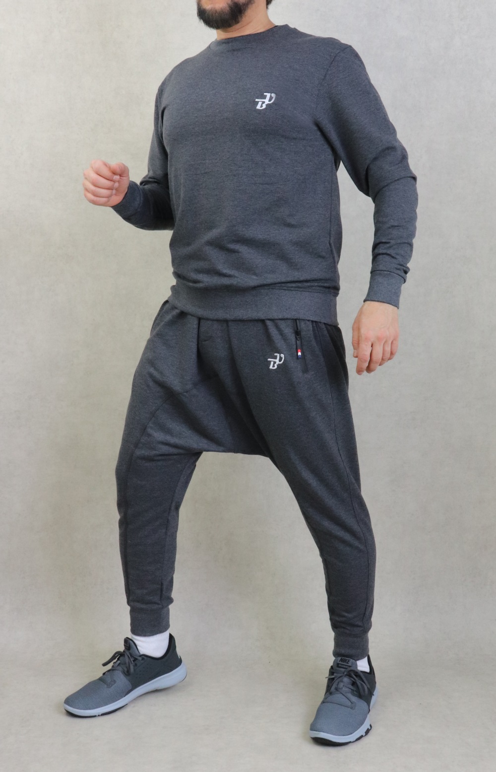 Ensemble léger deux pièces : Pantalon Seroual Jogging et son haut (sweatshirt) - Marque Best Ummah - Couleur Gris foncé chiné - REF. 36642 (49.00 €)