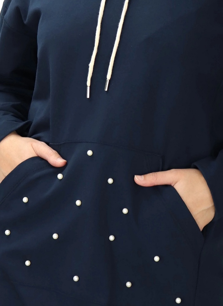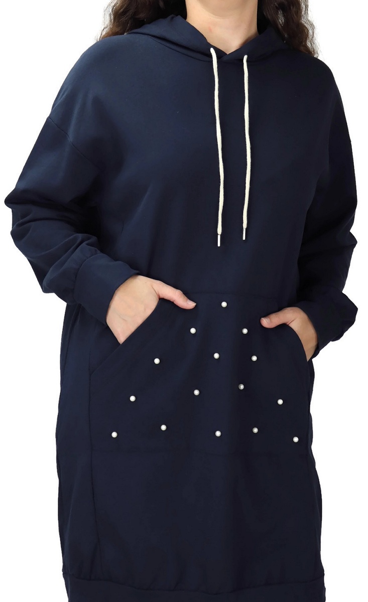 Sweat long perlé pour femme - Couleur Bleu marine Vetement & Accessoire