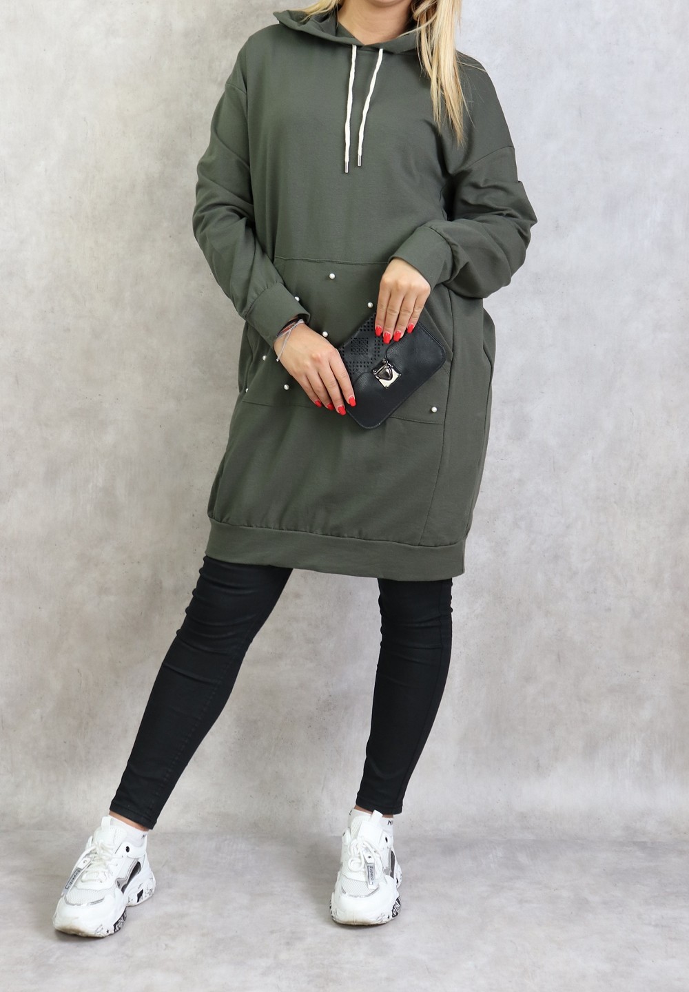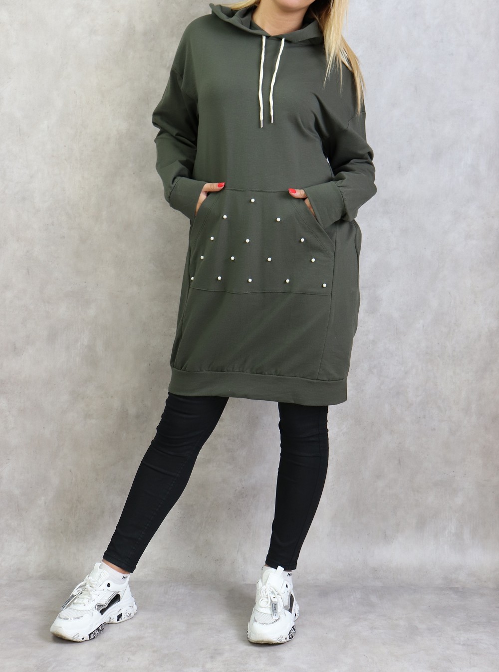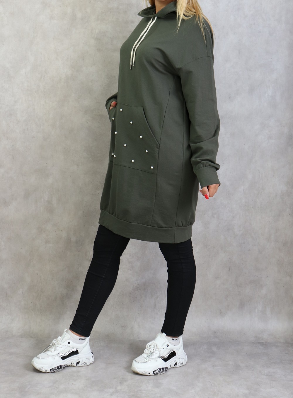 Sweat long perlé pour femme - Couleur kaki Vetement & Accessoire
