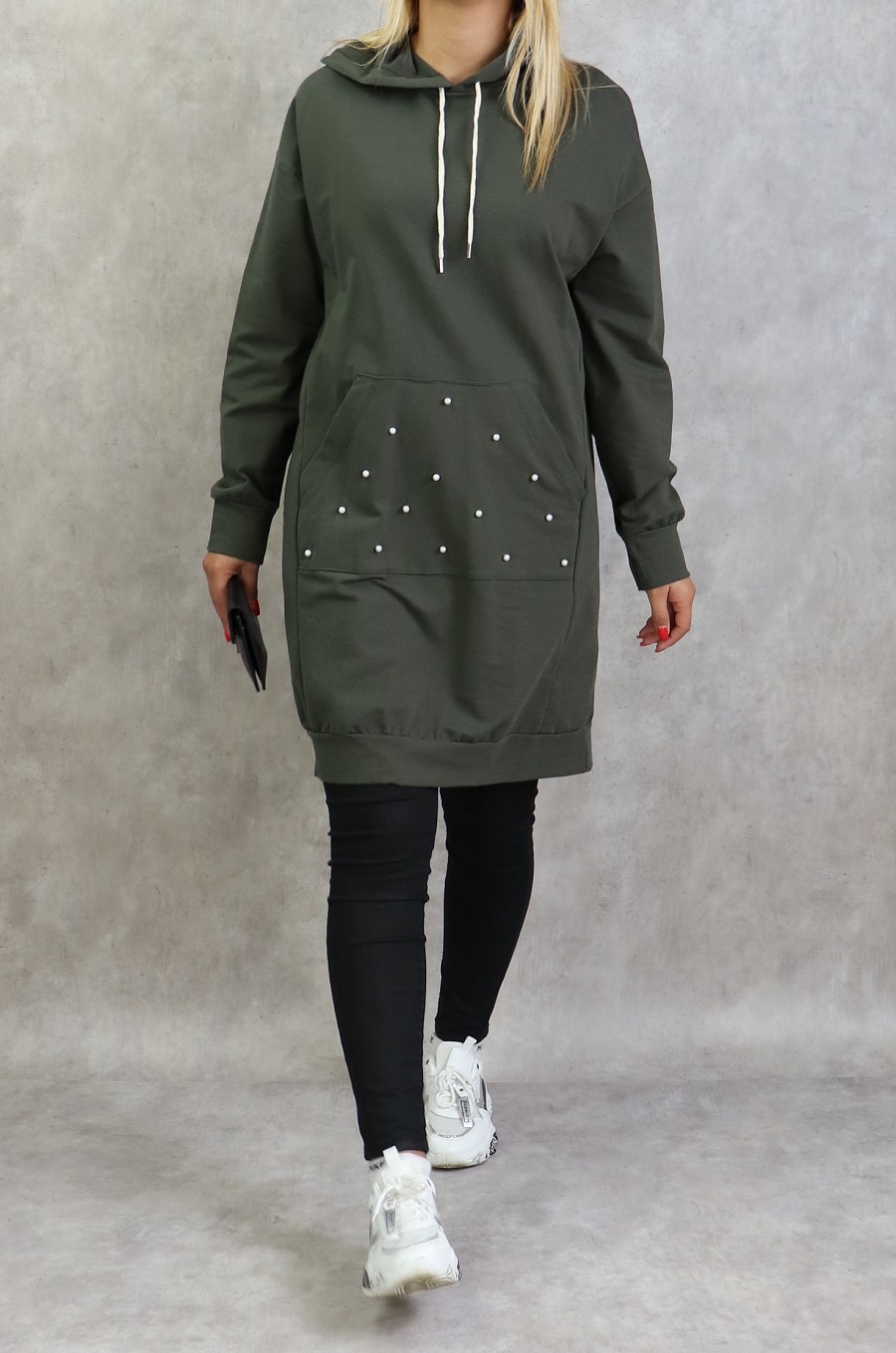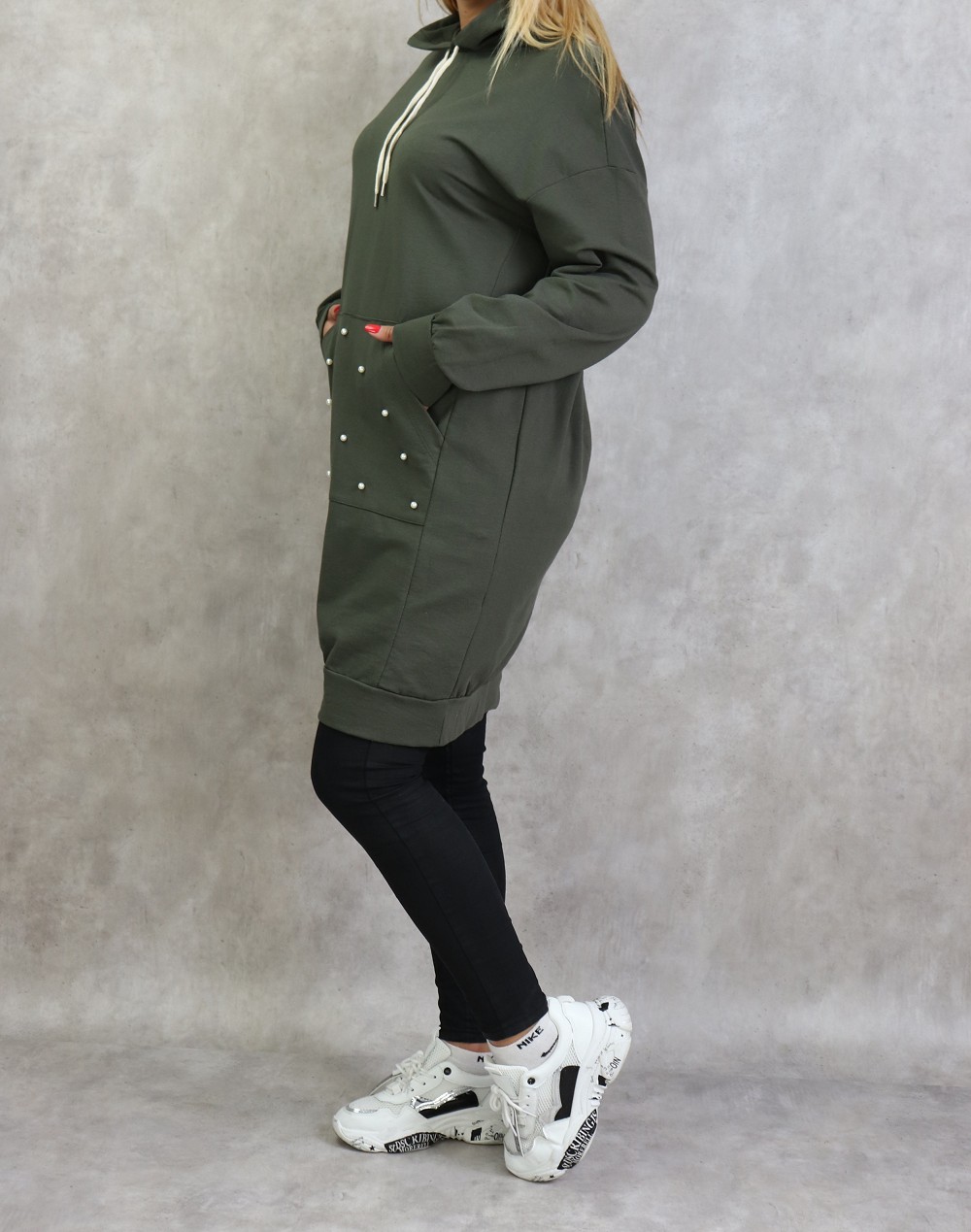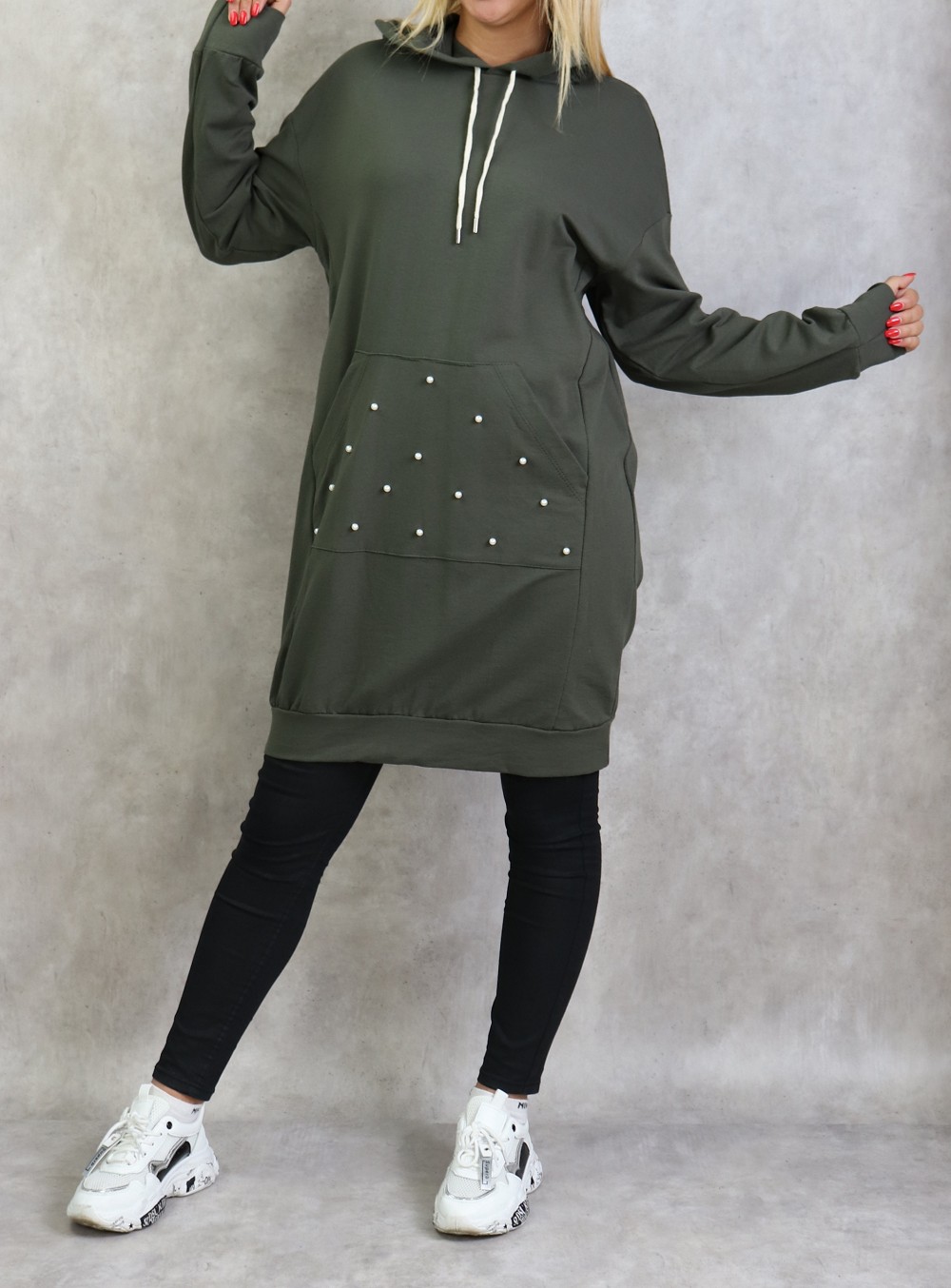 Sweat long perlé pour femme - Couleur kaki Vetement & Accessoire