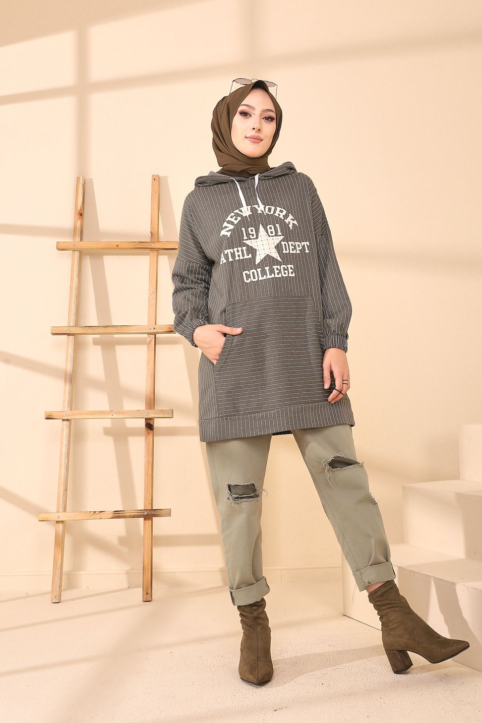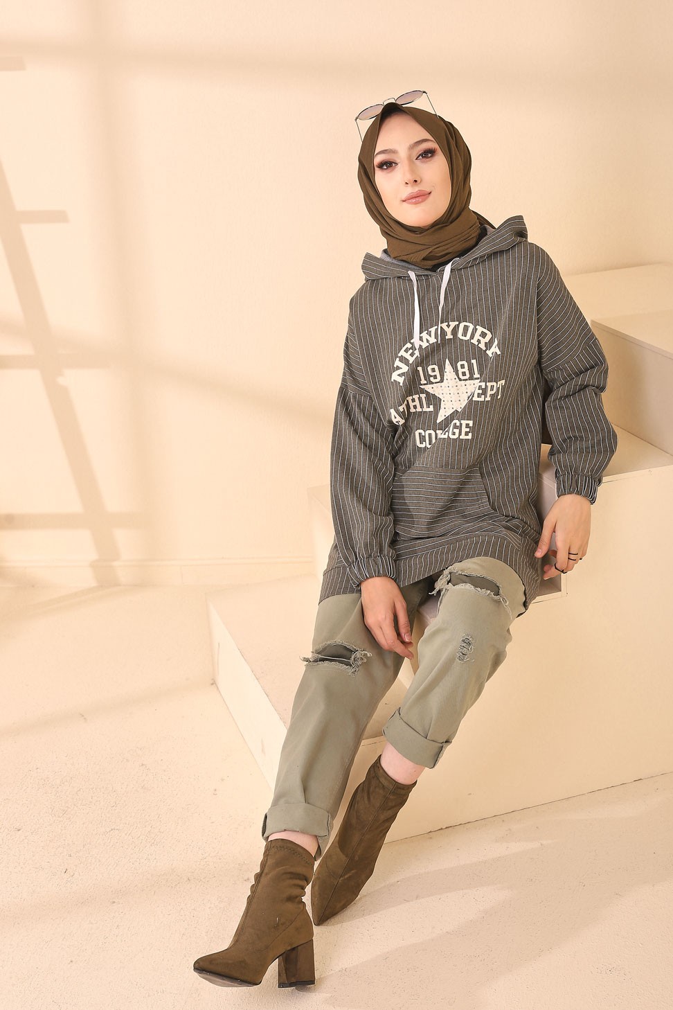 Sweat long pour femme - Tunique avec capuche - Couleur kaki Vetement & Accessoire