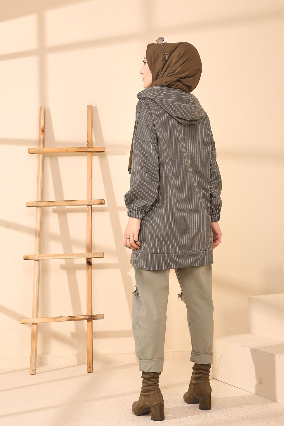 Cardigan zippé pour femme (Vêtement moderne hijab 2025) - Couleur gris clair - REF. 37805 (19.90 €)
