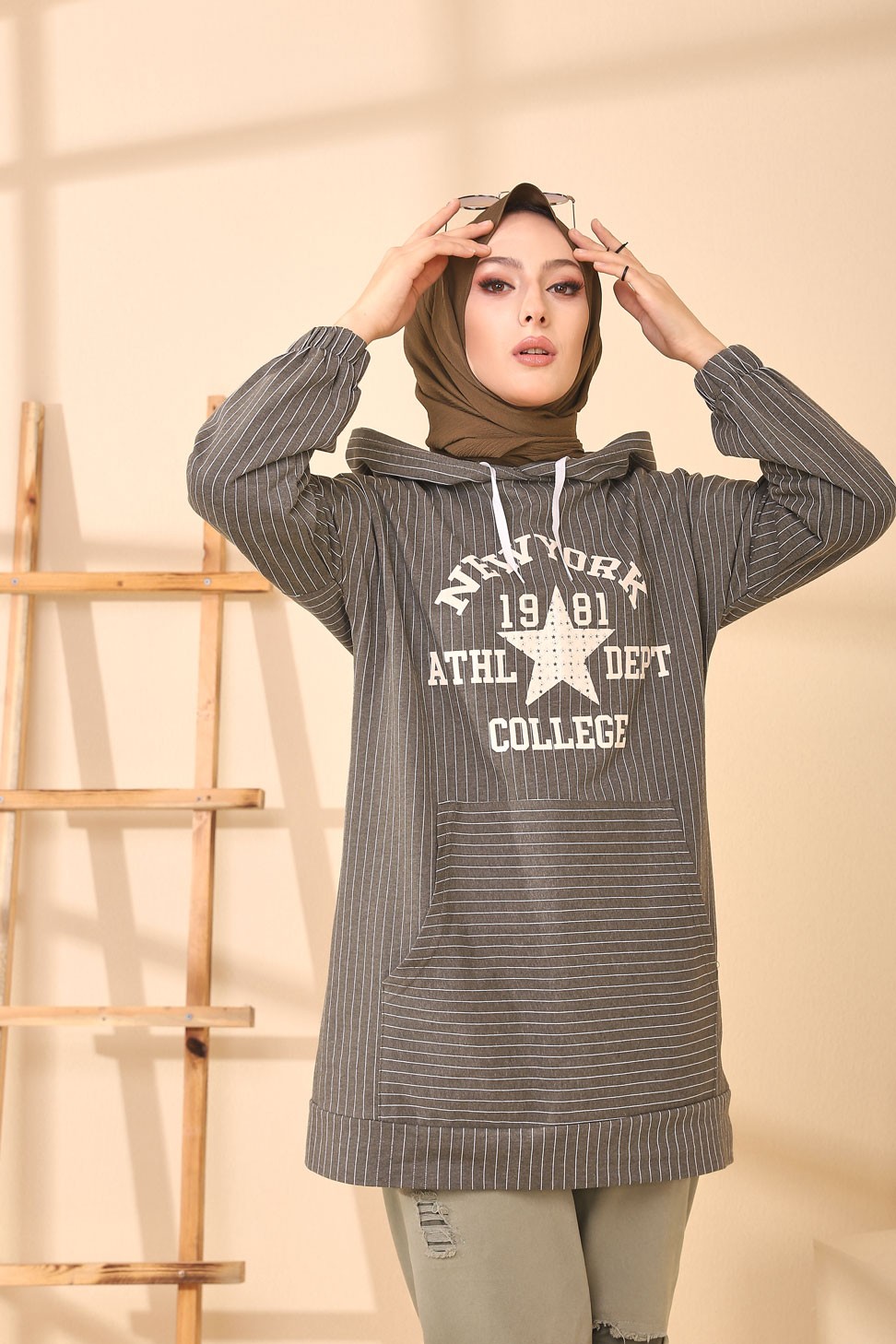 Sweat long pour femme - Tunique avec capuche - Couleur kaki