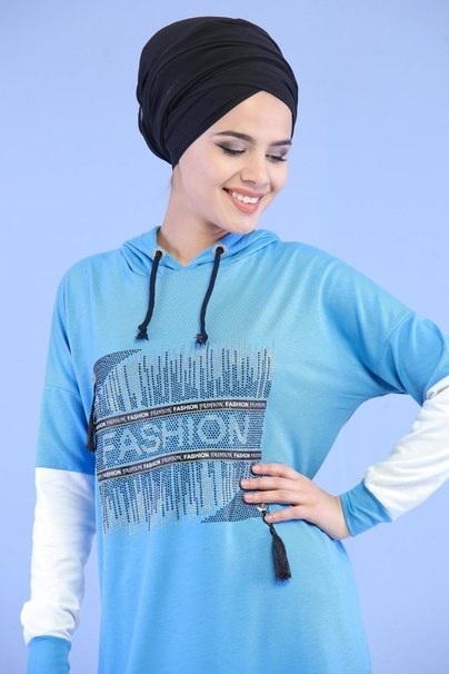 Tunique décontractée Sweat à capuche (Sweat-shirt femme voilée) - Couleur Bleue marine - REF. 32274 (18.00 €) - En Promotion à 14.90 €