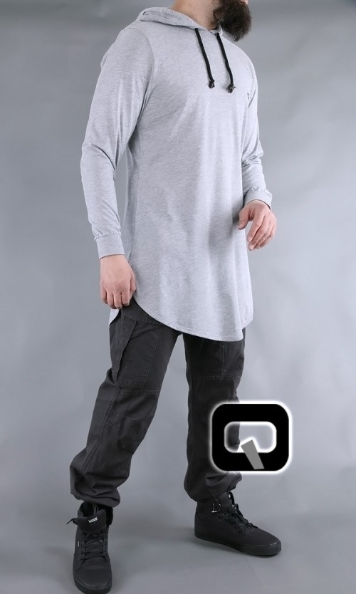 T-shirt uni à capuche à manches longues, bas légèrement arrondi, petites fentes sur les côtés...