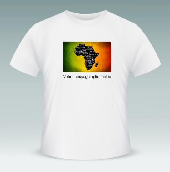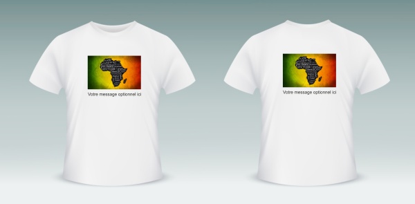 T-Shirt avec carte de l'Afrique marqué dessus les noms de tous les pays africains avec leur emplacement respectif.