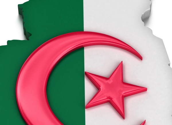 Le drapeau algérien représentant le territoire algérien en 3D.