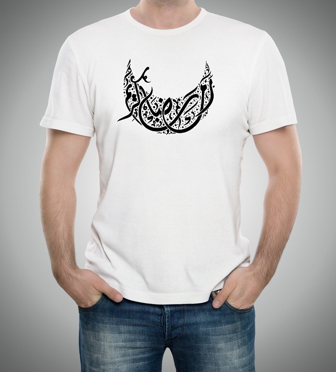 T-Shirt avec très jolie calligraphie artistique arabe "Ramadan Karim" pour fêter à tous les musulmans un bon Ramadan.