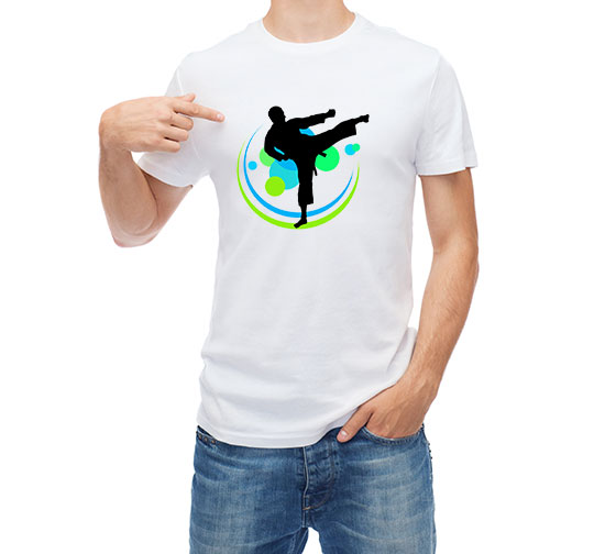 T-Shirt moderne avec illustration représentant un karatéka en position d’attaque.