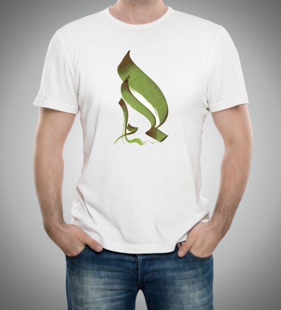 T-Shirt avec très jolie calligraphie artistique du mot arabe al-muslim "المسلم" (le musulman).