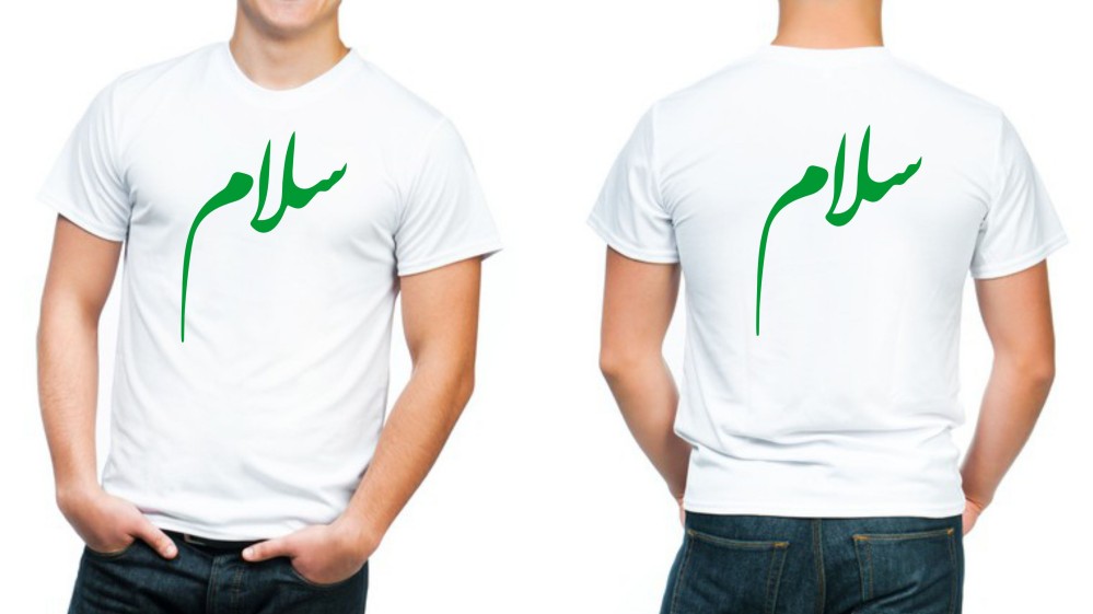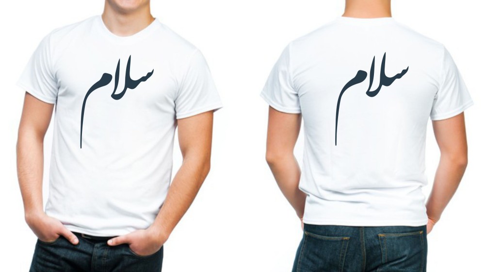 TShirt personnalisé avec la calligraphie arabe artistique Paix "Salâm" en arabe (سلام).