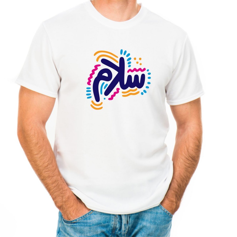TShirt personnalisé avec la calligraphie arabe artistique Paix "Salâm" en arabe (سلام).
